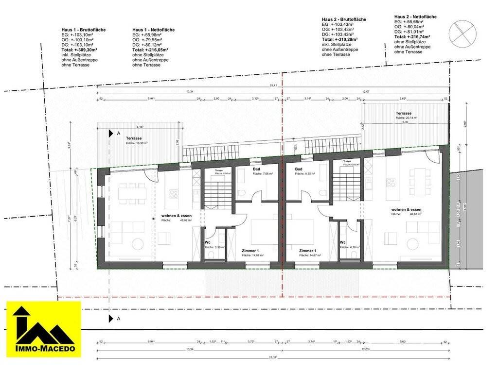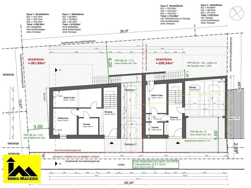 New semi-detached house with 216 m2 of living space on 2.61 ares (on the left) for sale with plans, comprising: