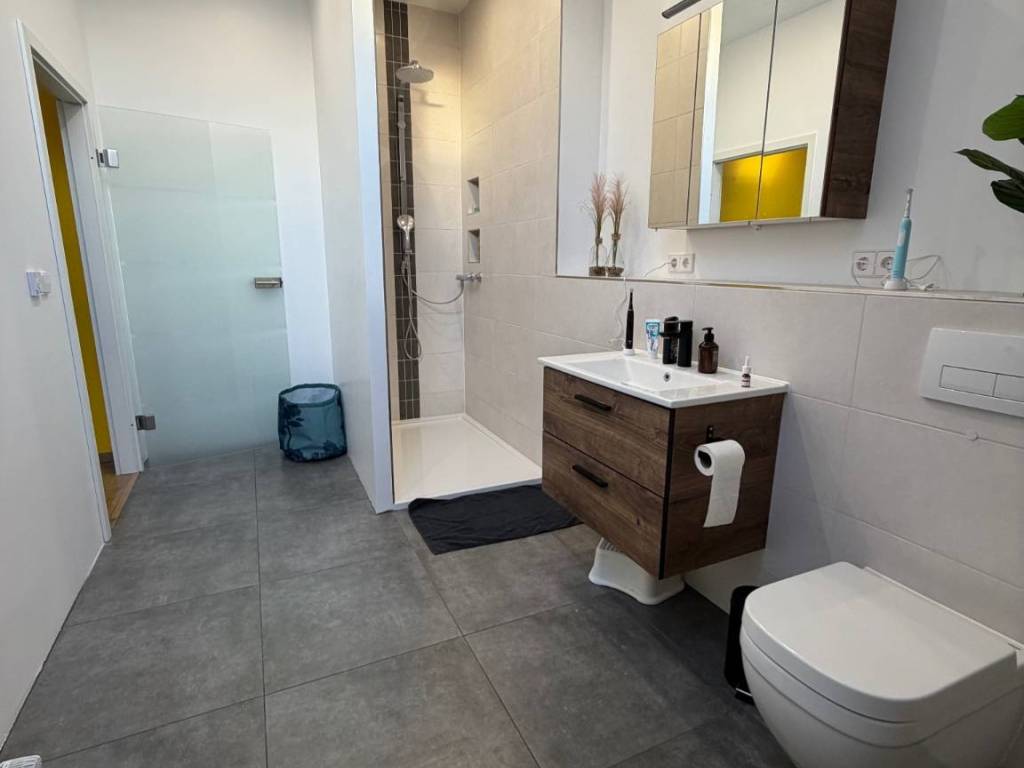 ? 253 m² Wohnfläche ? 332,2 m² Gesamtfläche ? Terrasse mit kleinem Garten (Südausrichtung) ? 4 große Schlafzimmer ? 3 Badezimmer ? Sehr große Garage für 2 Autos (Hebebühne möglich) ? Großer Hof mit weiteren Parkmöglichkeiten ? Großer Keller ? Wäscheschacht ? Bus direkt vor der Tür