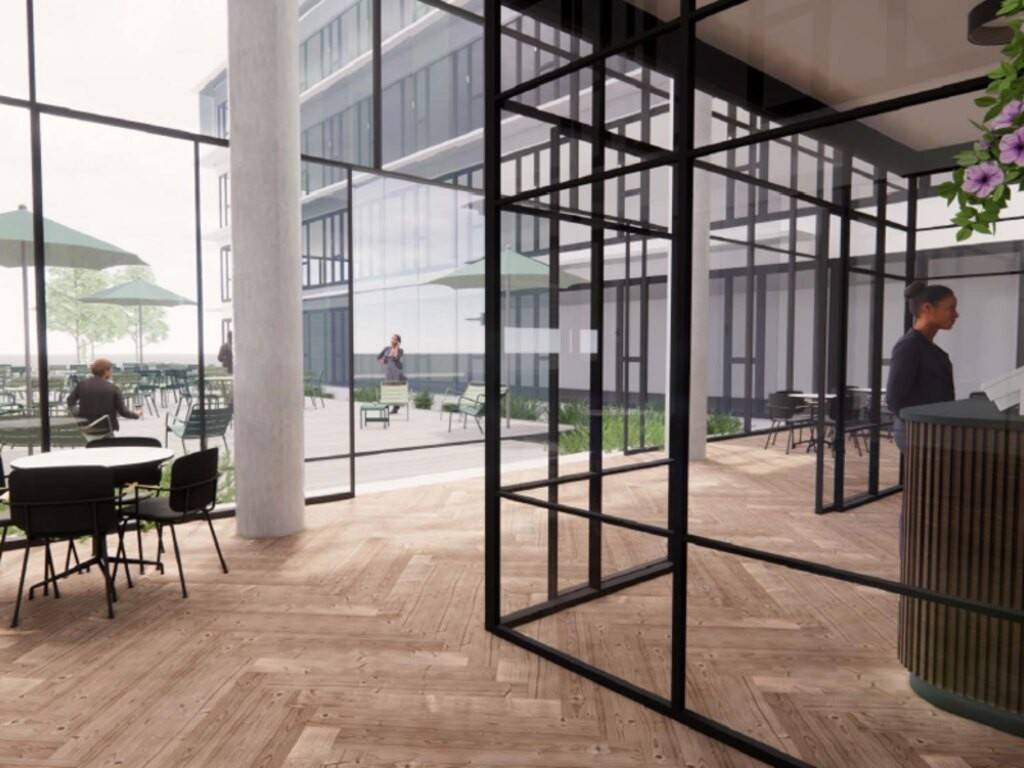 FEATURES Ceiling Type: Suspended Layout: Open space Air Con: Active ceiling Ventilation: Mechanical, Opening windows Daylighting: Atrium, External blinds IT: Building Automation System, Electrical Switchboard, Floor Boxes, IT Room, Optical Fibre IT Security: Access key card, Access videophone Vertical Transport: Lift/s, Service lift Sanitary Facilities: Private, PRM Service Areas: Reception, Waiting room Amenities: Cafeteria