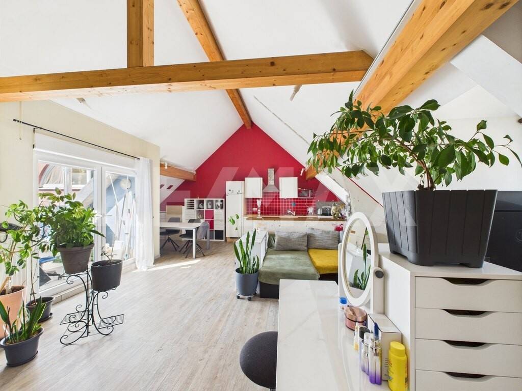 Disposition : Entrée ouverte menant à un vaste espace salon / salle à manger / cuisine d'env. 51 m² avec accès au balcon (d'env. 4 m²) Grande salle de douche avec espace buanderie (d'env. 9 m²) Chambre spacieuse de (d'env. 13 m²) Possibilité d'aménager une seconde chambre selon vos besoins