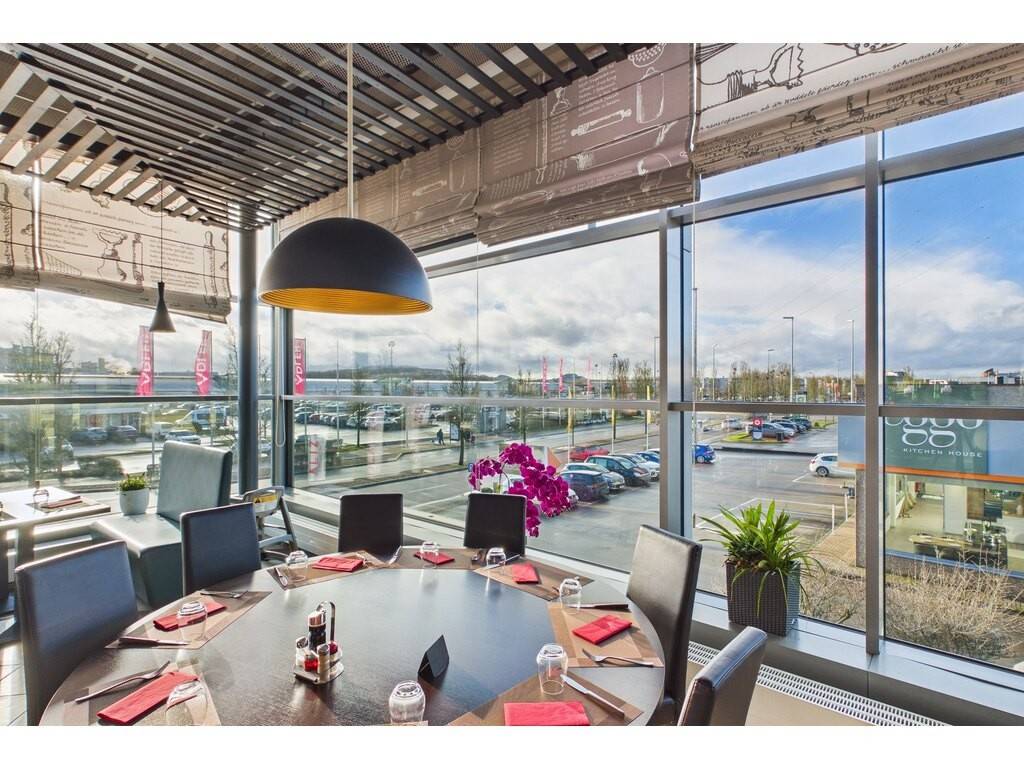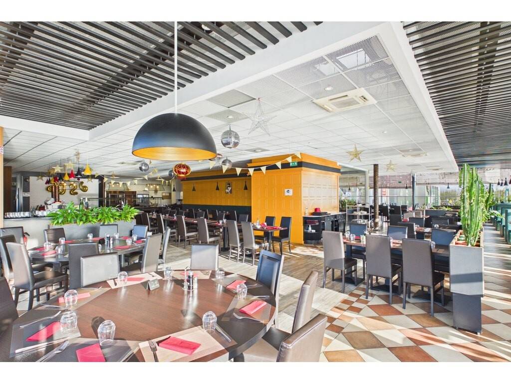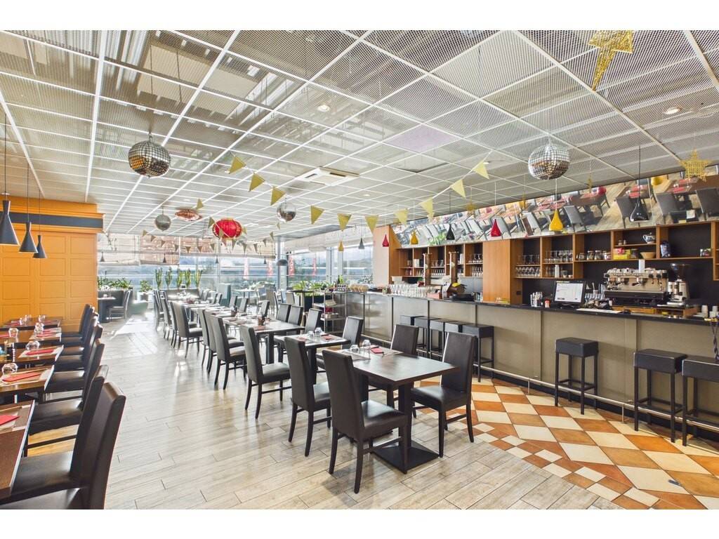 Grande salle avec effet “wow” dès l'entrée Immenses baies vitrées offrant une luminosité remarquable Grand bar ouvert sur la salle Espace enfants dédié