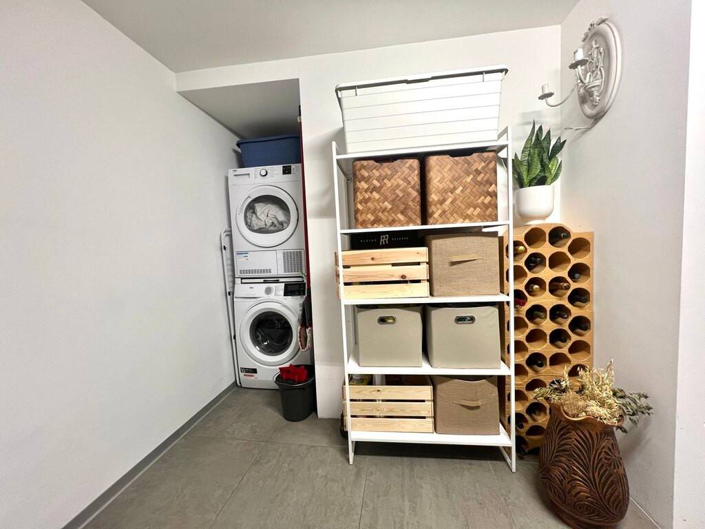 There is also a closed garage box with a laundry area and utility room. A private cellar on the lower level of this 12m² residence completes the offer.