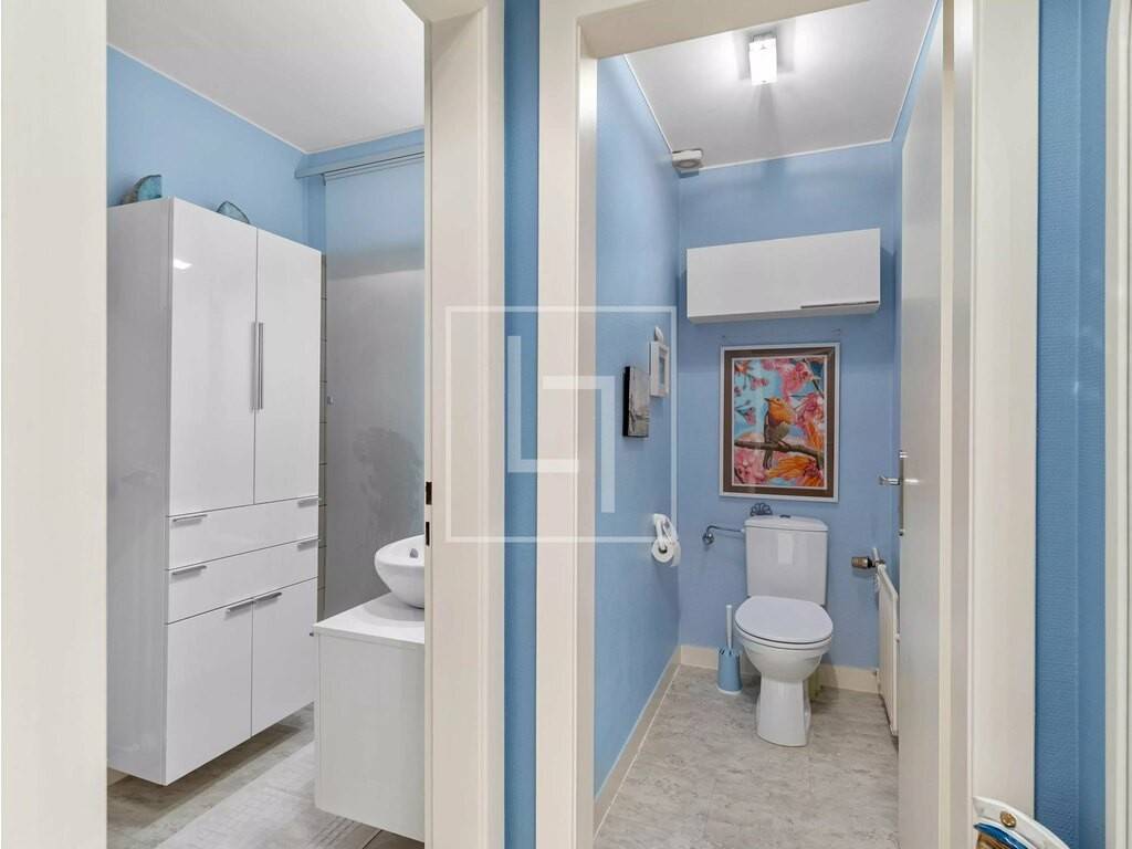 An elegant entrance of +/- 25 m² with cloakroom and guest WC