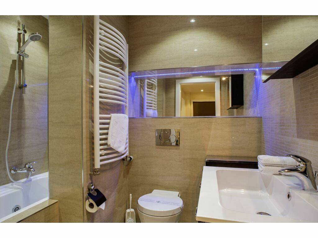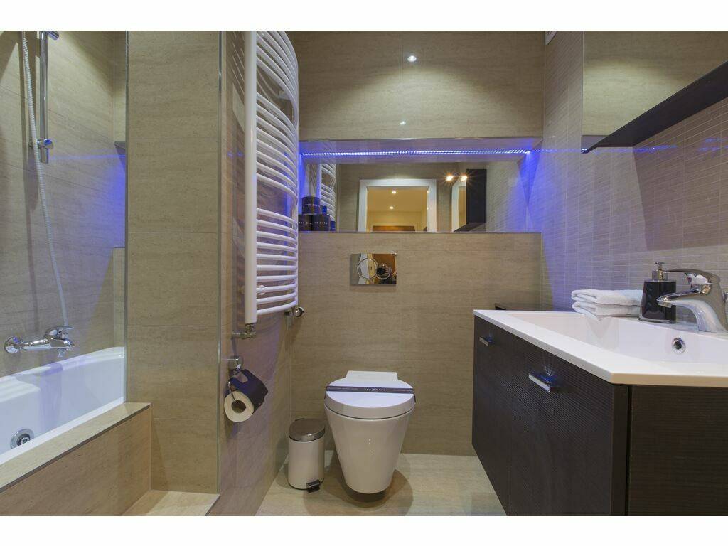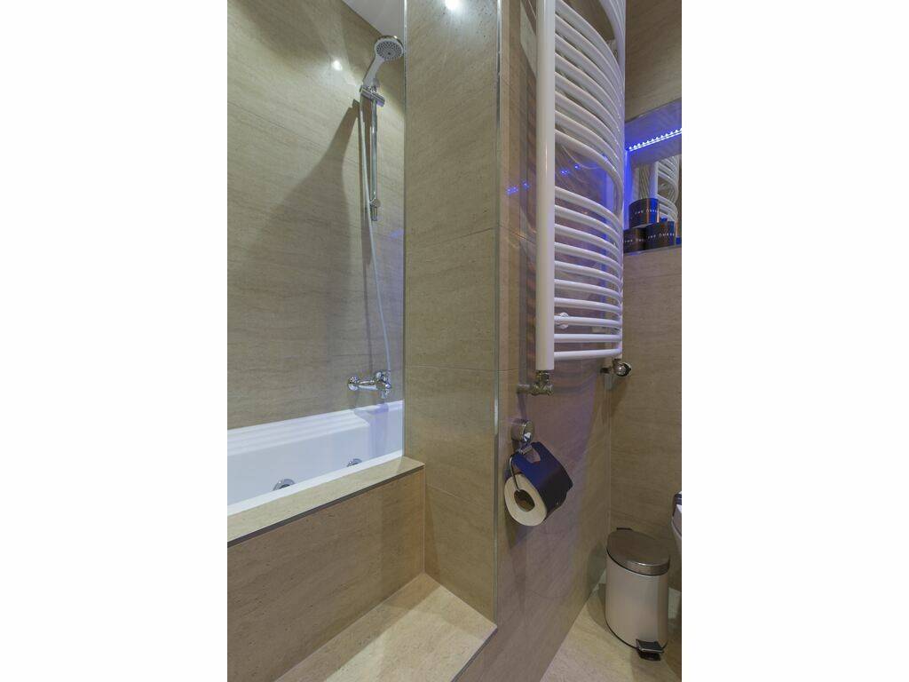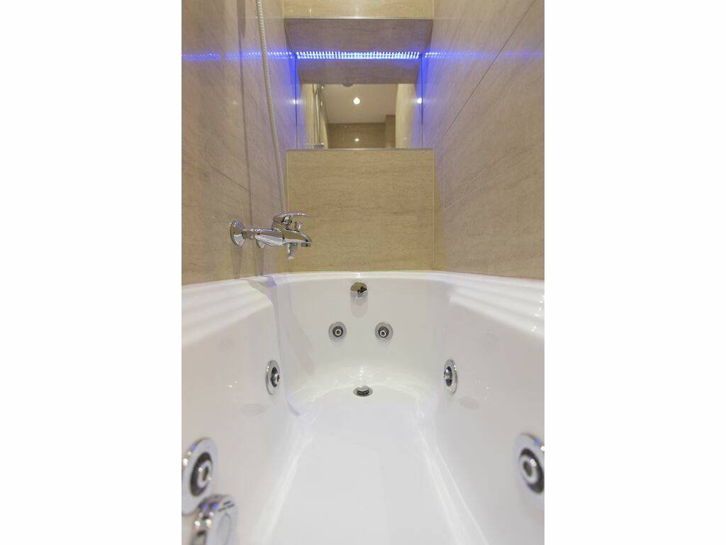 A modern bathroom equipped with a spa / hydromassage bathtub