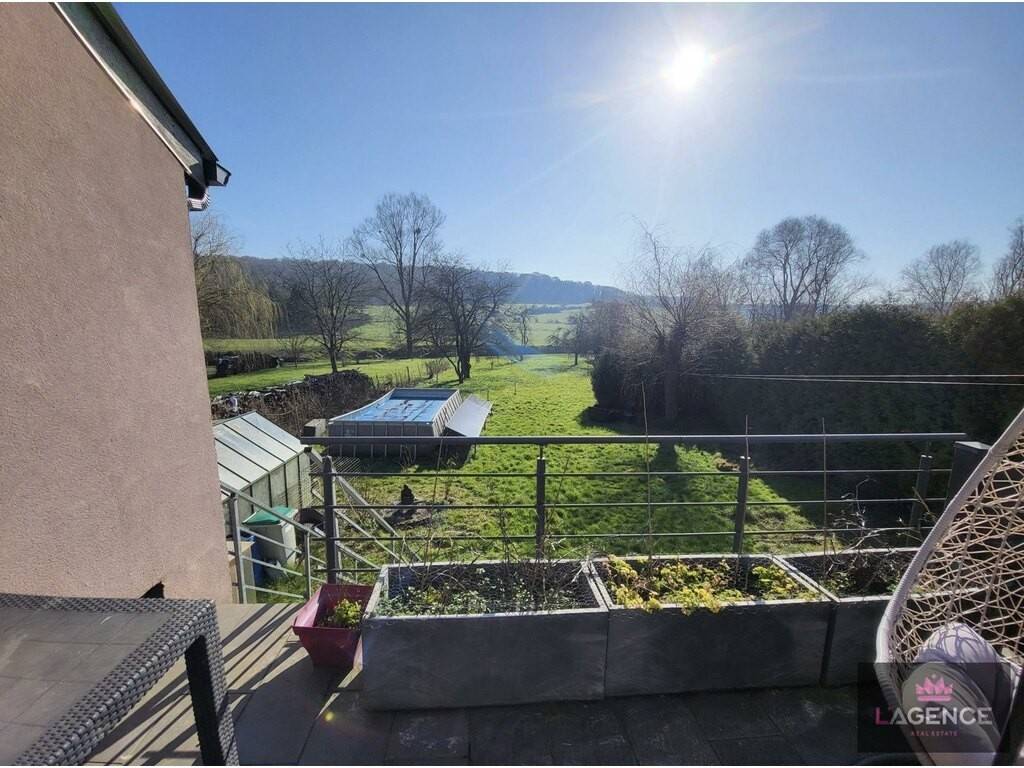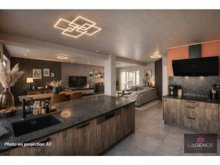 A l'étage, nous trouvons une magnifique pièce de vie de 48 m2 avec cuisine ouverte et poêle à pellets, accès sur la terrasse surélevée de 26 m2 qui domine ce grand jardin. Nous disposons de 2 nouvelles chambres ainsi qu'une buanderie de 8 m2 encore sur ce niveau.
