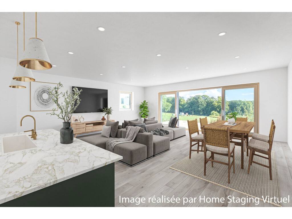 > Au rez-de-chaussée : garage de 26m² pour 1 place intérieure (+1 place de parking extérieure dans l'allée privative), 1 buanderie de 4.5m², un hall d'entrée de 7m², 1 WC séparé, et l'espace ouvert Cuisine / Salle à Manger / Salon de 49m² donnant sur une grande baie vitrée et une terrasse de 18m² ;