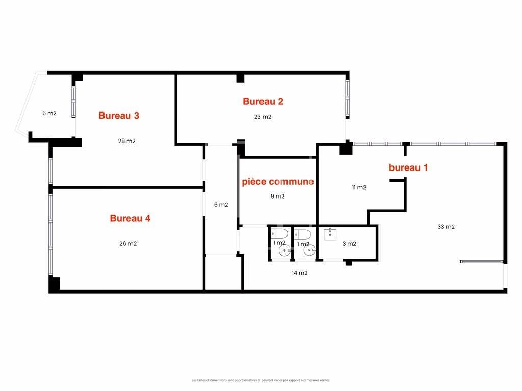 - Office 2: approximately 26 m², bright and functional