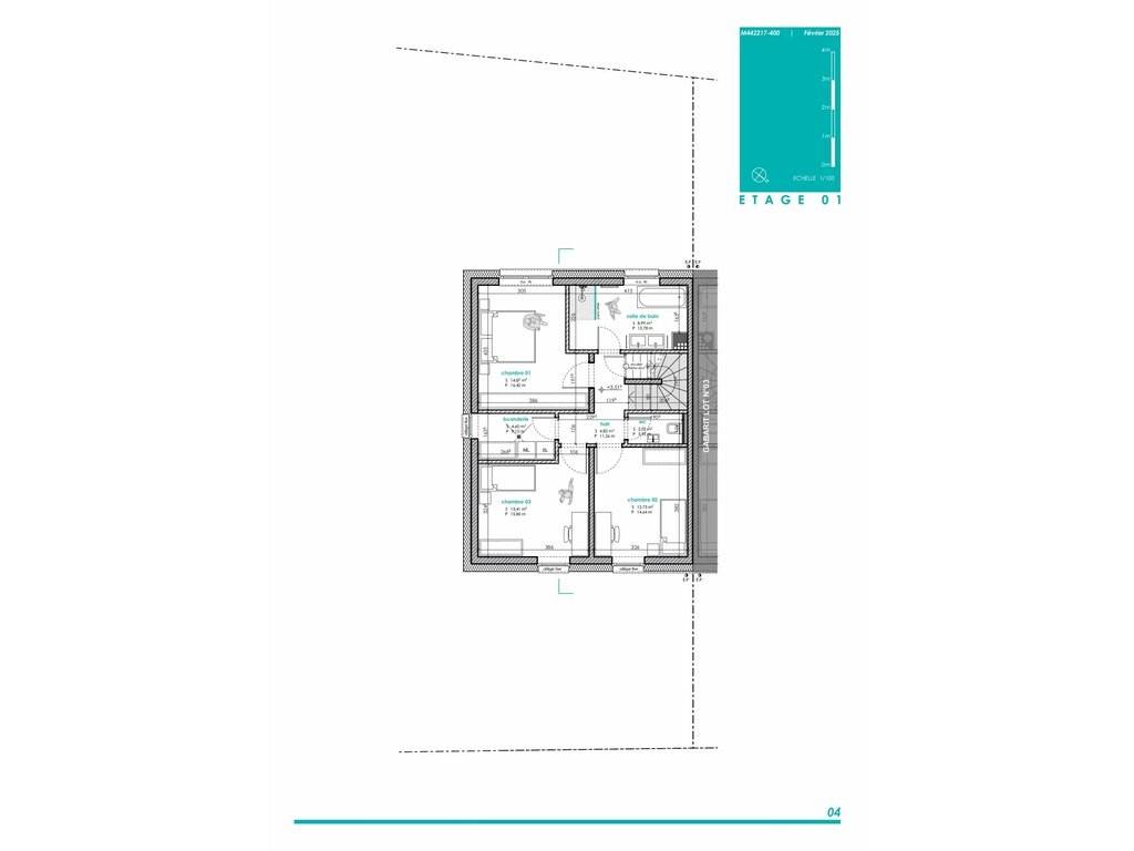 LOT 04: single-family strip house on a 3.15 ares plot with a living area of +/- 115 m2 and a total area of +/-203m2 comprising: