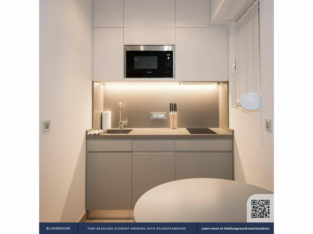 The apartment boasts a fully equipped kitchen with modern appliances, including a cooktop, refrigerator with freezer, microwave, sink, dishwasher, coffee machine, toaster, and kettle. Complete with basic kitchen equipment such as cutlery, crockery, cooking utensils, and tableware, it caters to all your culinary needs. Relax in the seating area with a flat-screen TV and stay connected with free Wi-Fi. Laundry facilities are available in the building, and the apartment includes all costs for water, electricity, and heating. Enjoy the convenience of weekly cleaning and a weekly change of bed linen and towels.