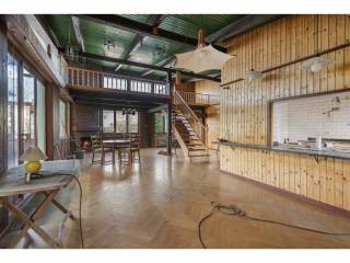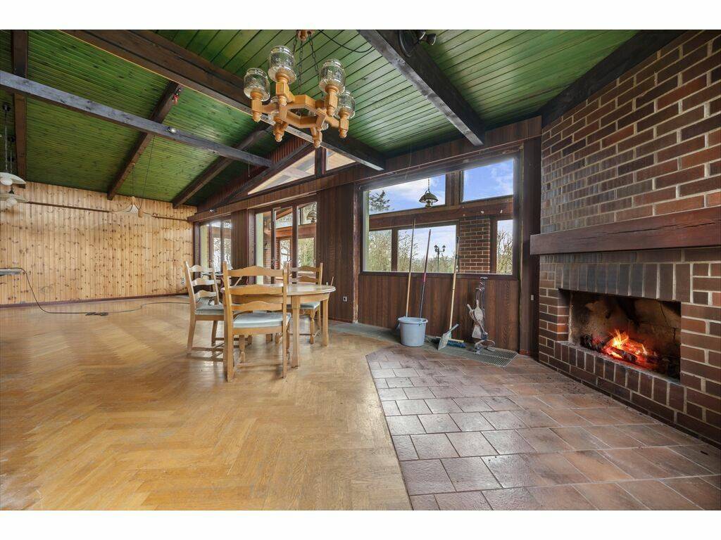 • Entrance hall • Large living room with fireplace • Dining room • Separate kitchen • Several bedrooms • Bathroom • Separate WC • First garage currently used as a workshop • Second garage • Technical rooms • Storage spaces