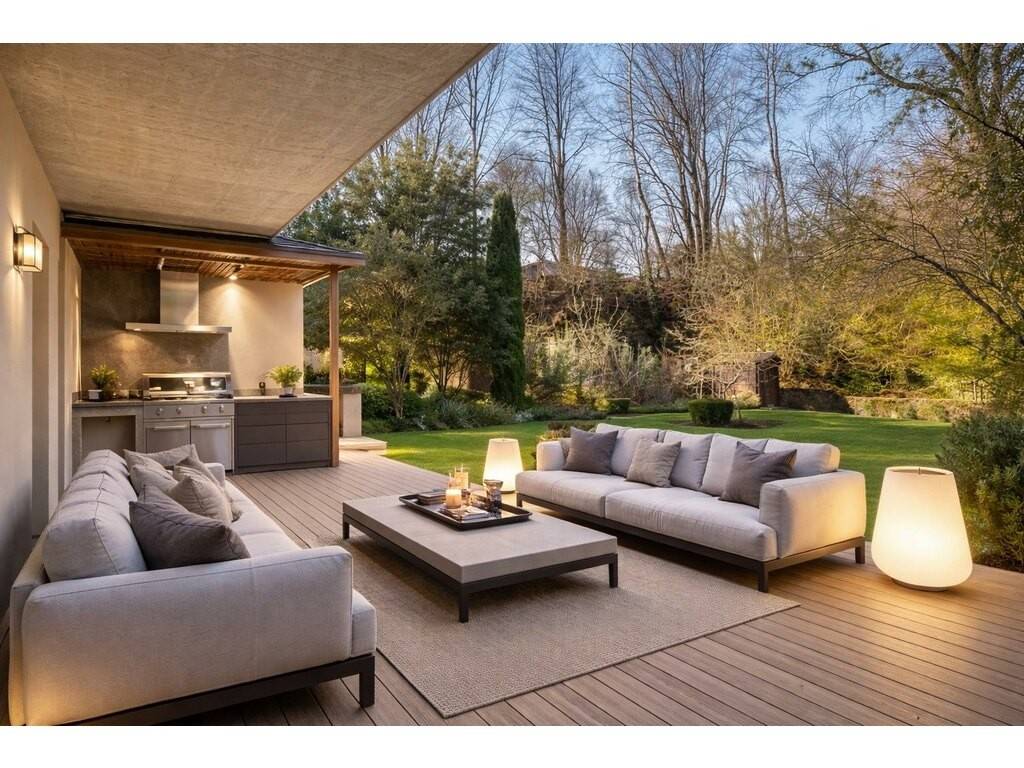 The fully equipped kitchen also has direct access to the terrace and garden, creating an ideal indoor and outdoor living space to enjoy sunny days, entertain guests, or simply relax.