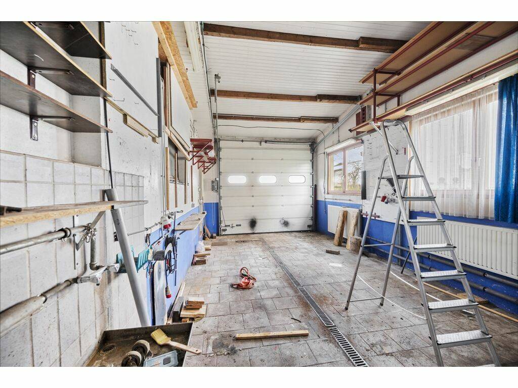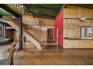 • Entrance hall • Large living room with fireplace • Dining room • Separate kitchen • Several bedrooms • Bathroom • Separate WC • First garage currently used as a workshop • Second garage • Technical rooms • Storage spaces