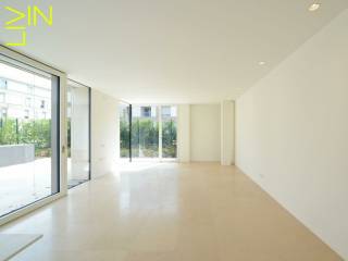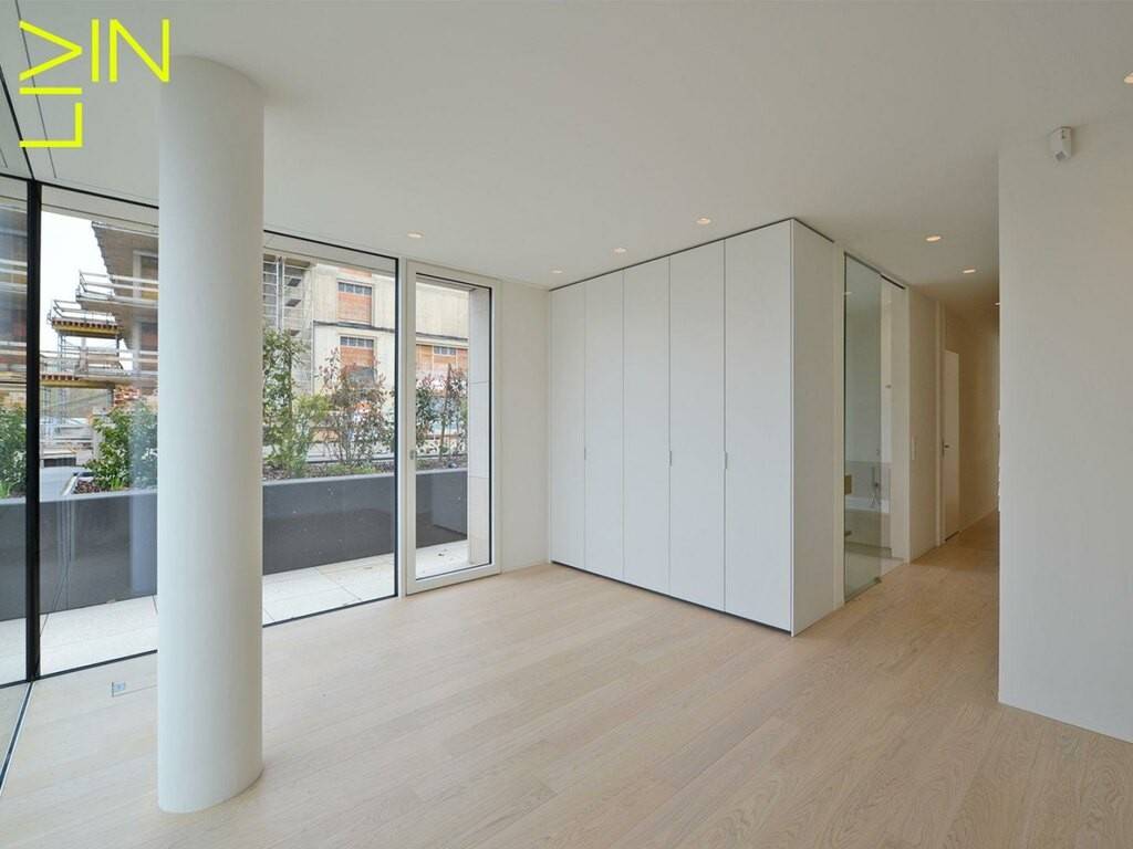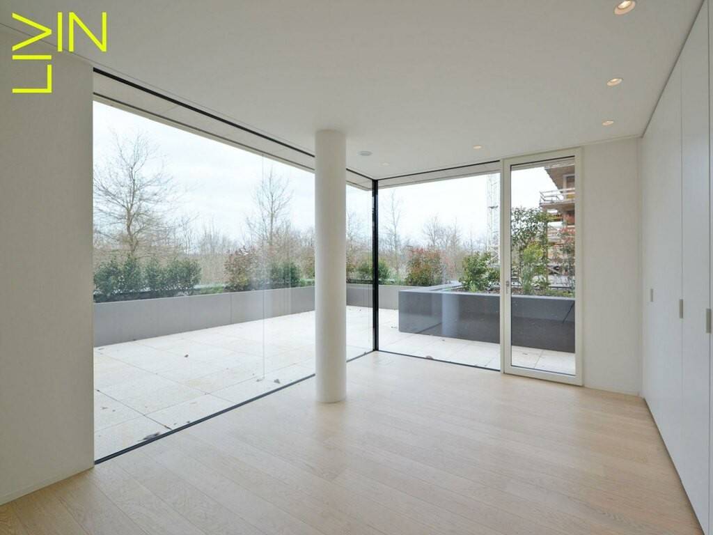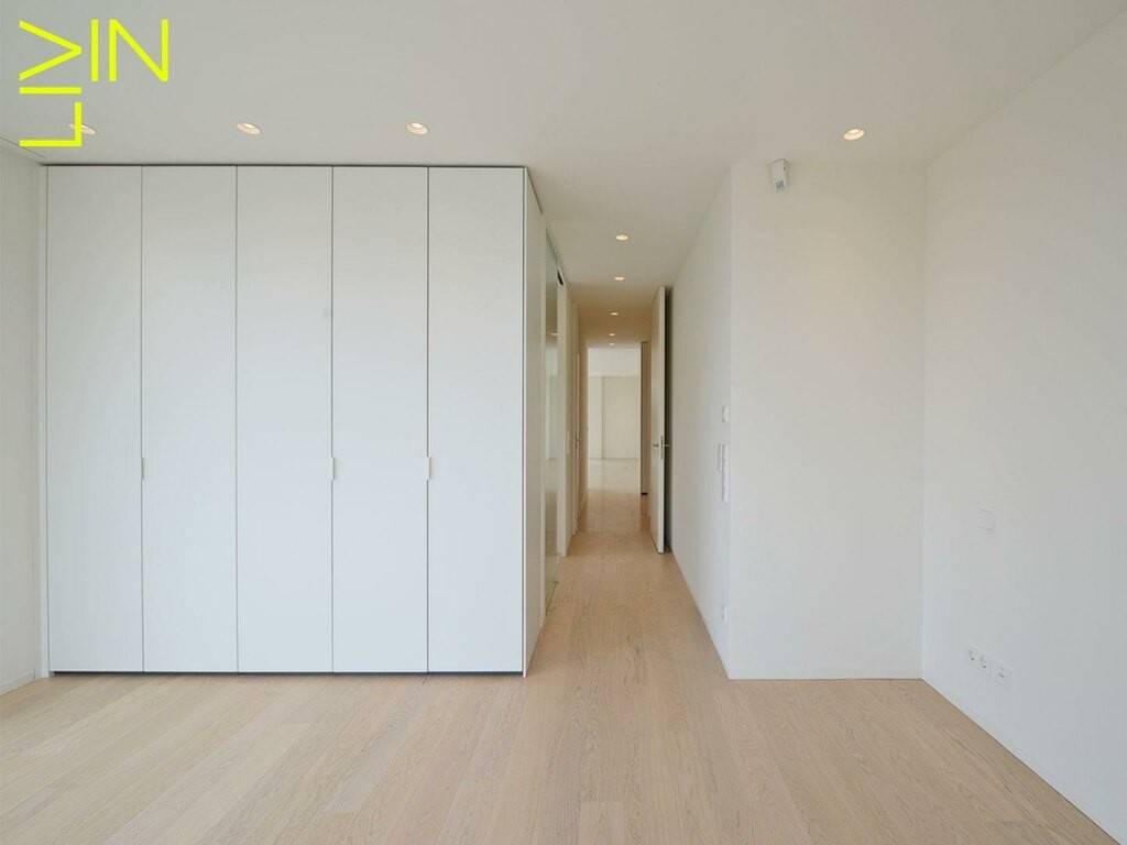 On the first level the apartment is composed of an entrance hall with a separate toilet and a kitchen open to a spacious living room that is giving access to a generous terrace of 80 sqm. On the same floor you will find a master bedroom with build-in cupboards as well as a private bathroom.