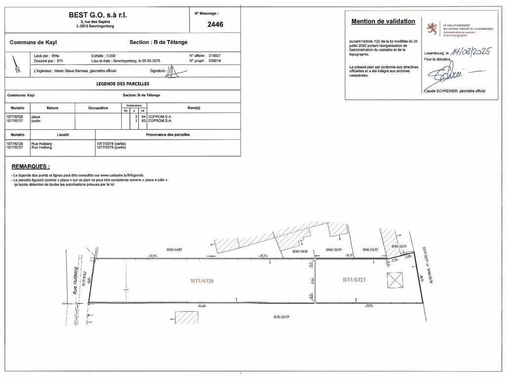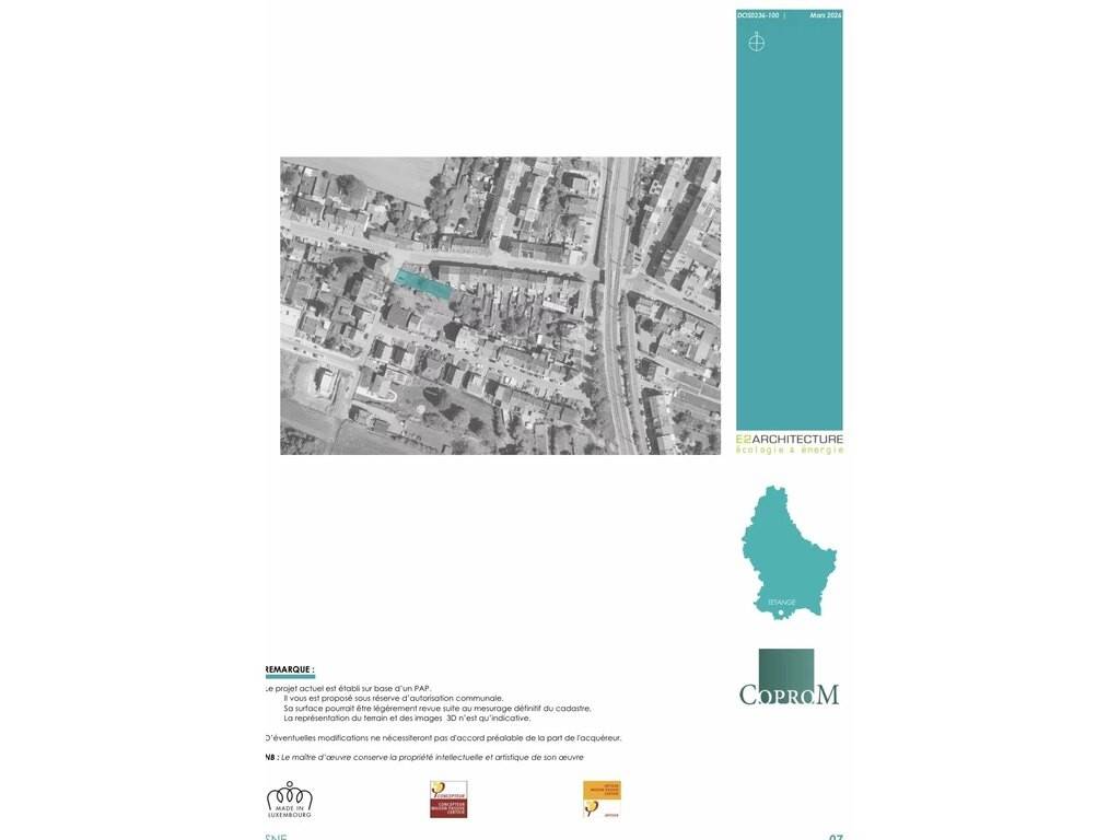 Beau terrain construisible sans contrat de construction, plans existants (hors autorisation de bâtir) d'une maison jumelée à 4 chambres à coucher, 2 salles de bains, living cuisine, WC séparé, garage 2 voitures, buanderie et local technique. - Surface terrain: 3,84 ares - Numéro Cadsatral: 1077/6726 - Adresse: 2, Huberg, L- 3773 Tétange - Prix: 345.600.-€ Sale Details - Honoraires à la charge: Non communiqué