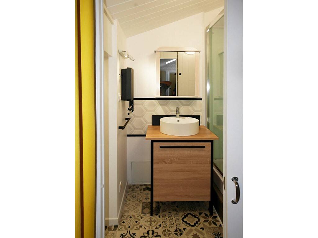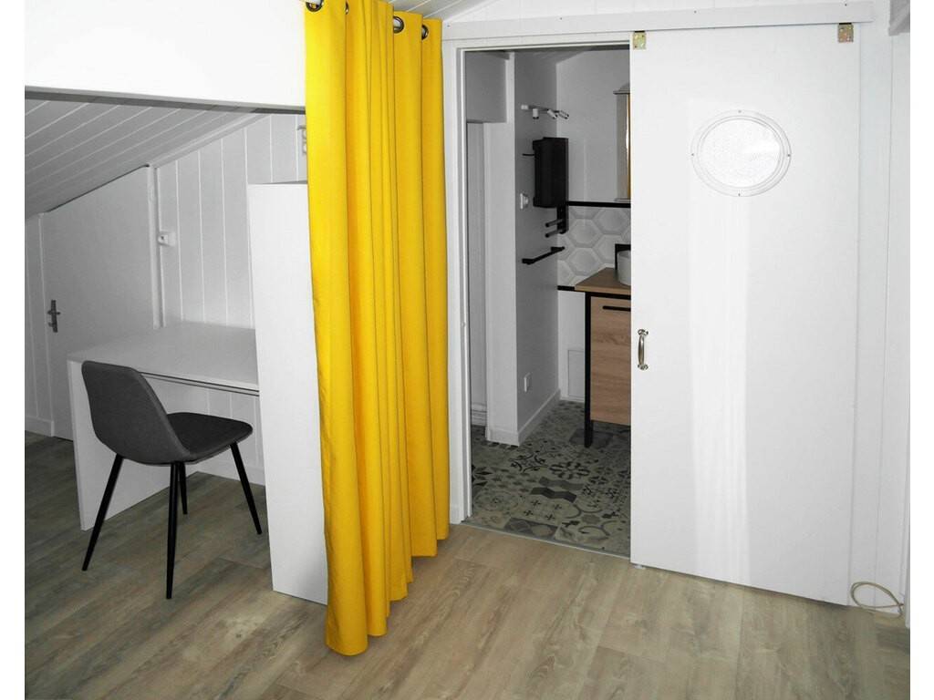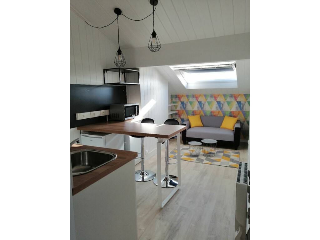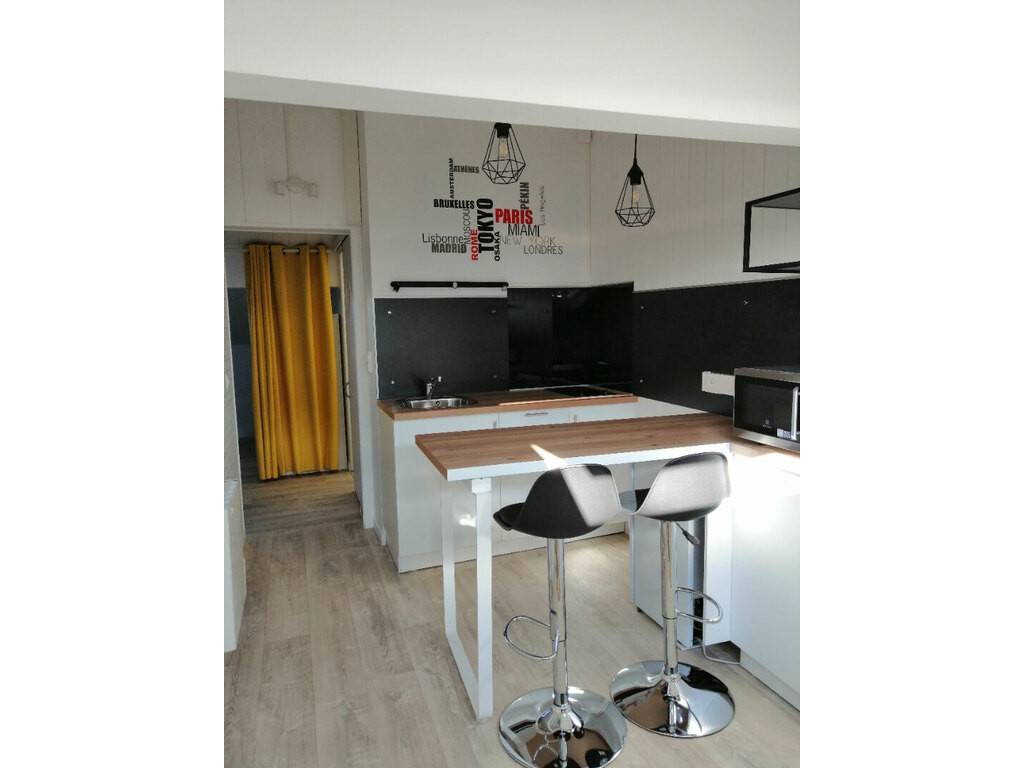 L'appartement est entièrement équipé. Il se compose : - d'une entrée, - d'une pièce de vie avec cuisine équipée, coin salon, coin bureau et coin nuit, - d'une salle d'eau, et, - d'un WC séparé