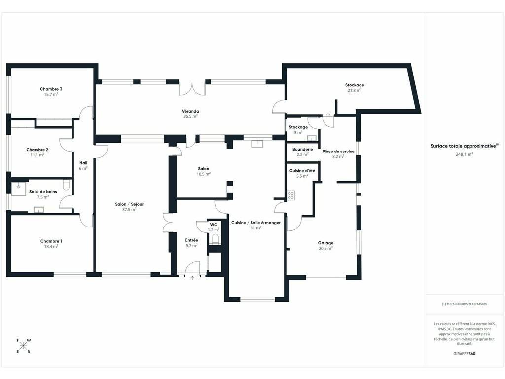 Elle développe une surface totale d'environ 248 m², dont 155 m² habitables, offrant un fort potentiel d'aménagement.