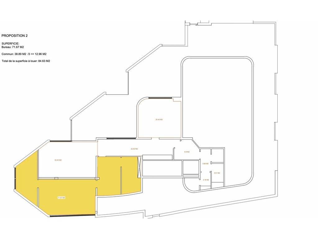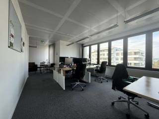 La surface de bureaux est cloisonnée et se compose de deux pièces et d'une salle serveur. Des toilettes et une kitchenette communes sont également disponibles.