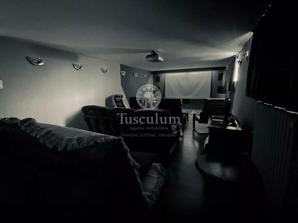 En contrebas, le sous-sol a été pensé comme un véritable espace de vie complémentaire : salle de cinéma, cave à vin, vastes volumes à personnaliser et pièces techniques. Le terrain, arboré, offre une intimité rare et une vue dégagée.