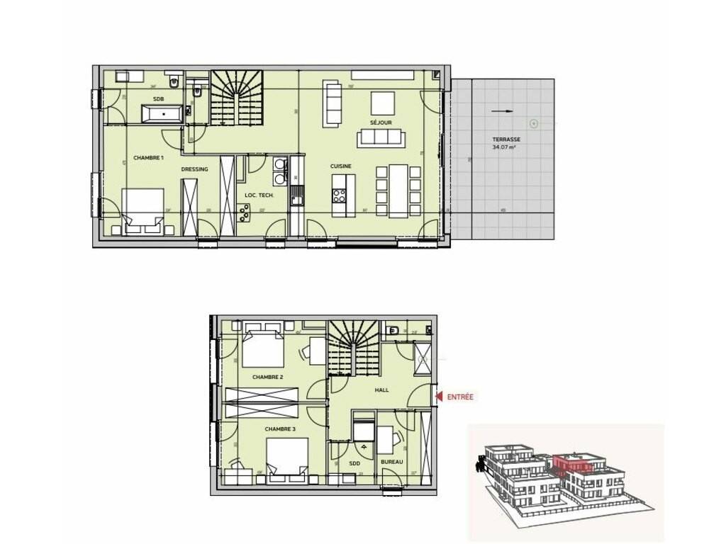 On the second floor, a master suite of over 30m2 (bedroom, fitted dressing room and shower room), a separate toilet, a laundry room, a large living room and an open kitchen opening onto a 34m2 terrace.