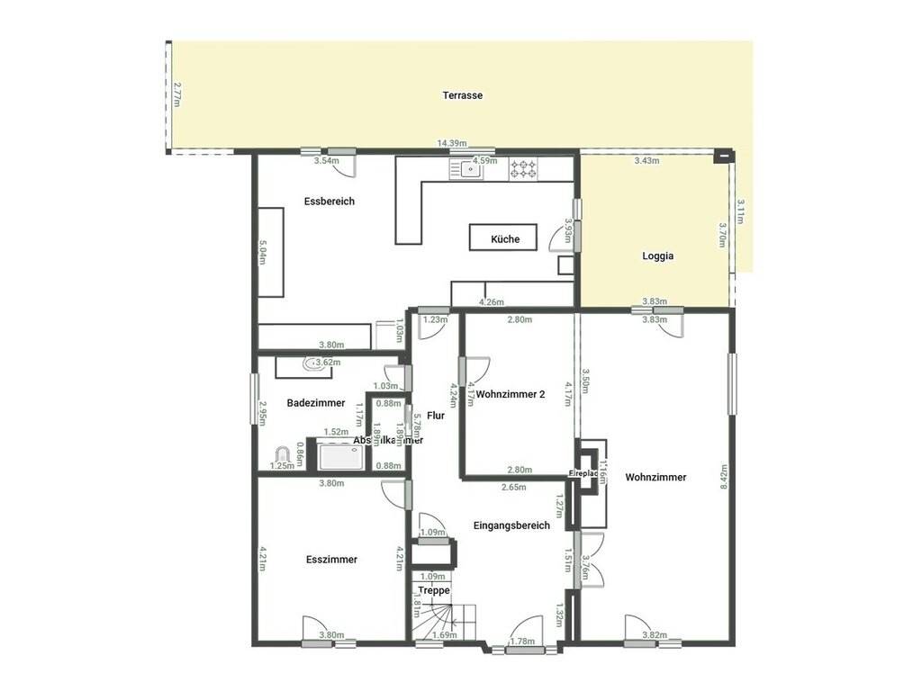 Le vaste salon avec cheminée est sans conteste le joyau de cette demeure — un espace lumineux et généreux où il fait bon se retrouver, bercé par la chaleur d'un feu crépitant les soirs d'hiver.