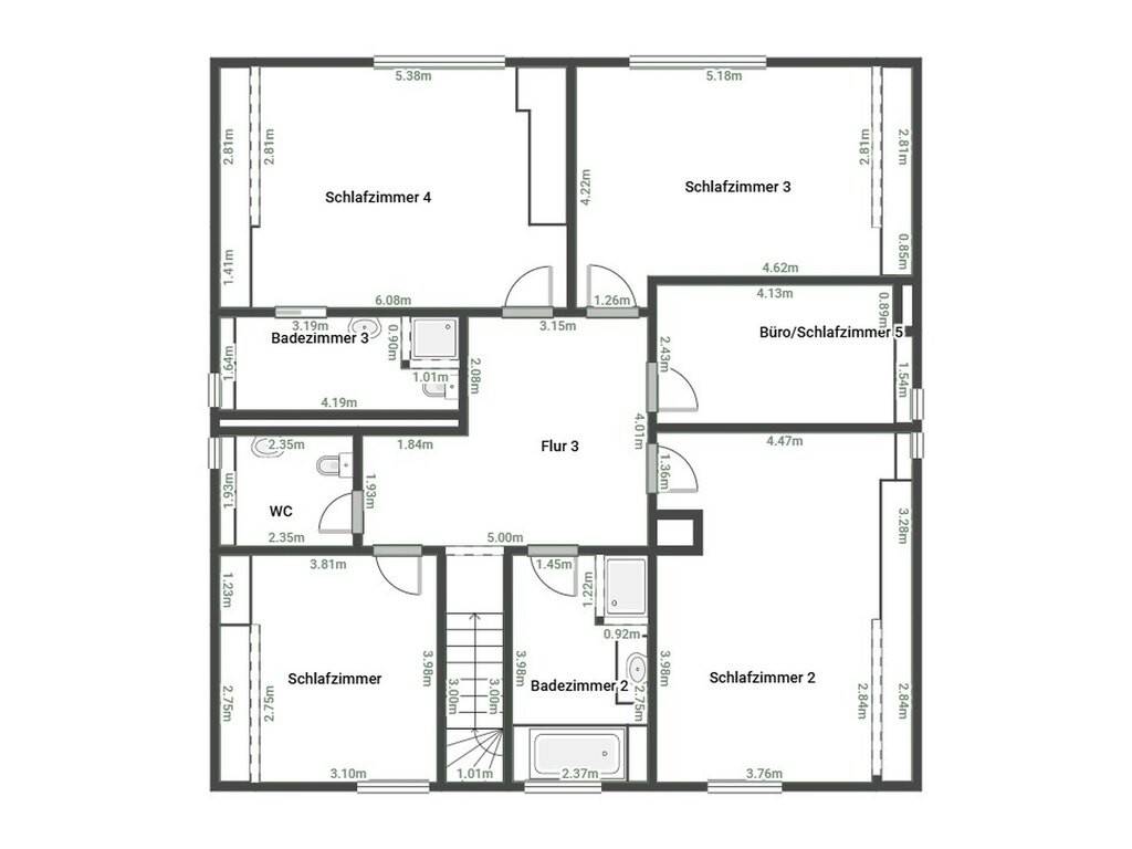 La maison dispose de cinq belles chambres, offrant tout l'espace nécessaire pour accueillir famille et invités dans le plus grand confort. À l'étage, deux salles de bains élégamment aménagées desservent les chambres avec praticité, complétées par un WC séparé pour encore plus de confort au quotidien. Au rez-de-chaussée, une troisième salle de bains assure un confort optimal pour les espaces de vie et les invités, tandis qu'un débarras pratique offre un espace de rangement supplémentaire bien appréciable pour le quotidien.