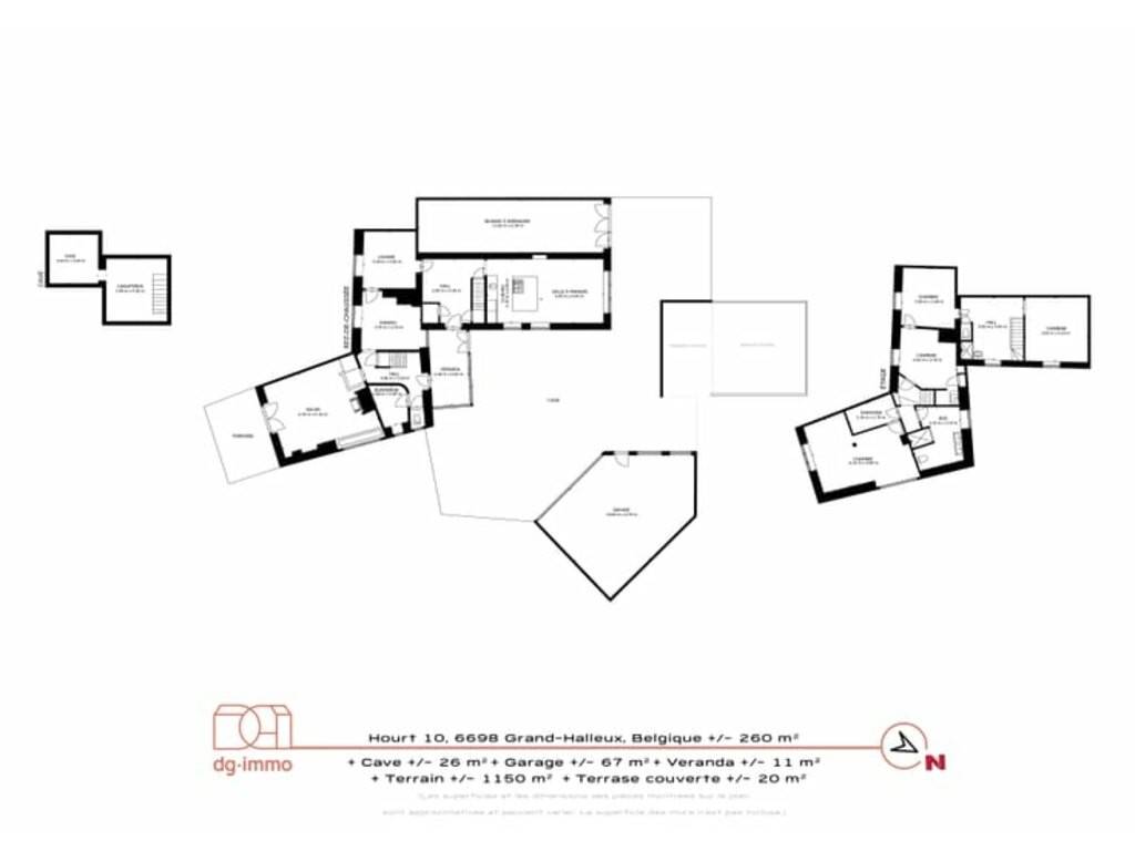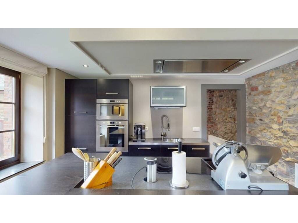 Rez-de-chaussée: - Hall d'entrée: - Cuisine full équipée ouverte sur la salle à manger - Vaste séjour avec poële à bois - Bureau - Petit salon "lounge" - Buanderie - WC séparé