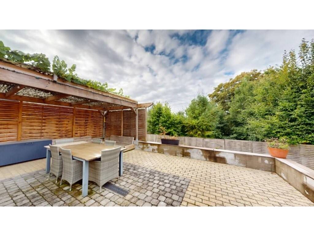 Elle offre en outre des caves, un vaste garage 3 voitures avec porte sectionnelle automatique, une ancienne grange aménageable, une belle terrasse partiellement couverte, un jardin avec petit étang et une belle vue dégagée.