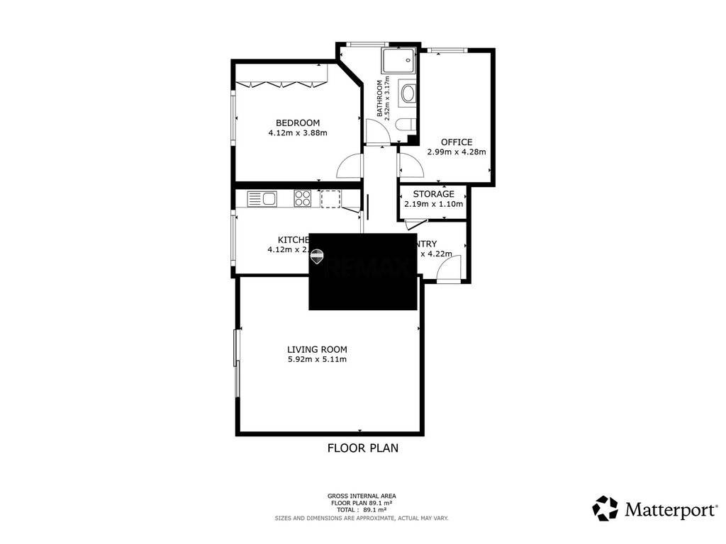 The storage room has an area of approx. 2.97 m²