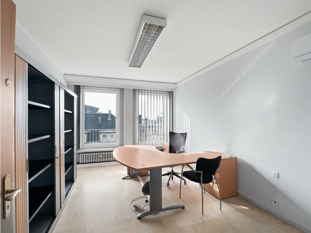 L’espace se compose de cinq bureaux distincts. L’agencement actuel permet une organisation fluide et fonctionnelle, parfaitement adaptée à une activité professionnelle telle qu’un cabinet, une fiduciaire ou toute société recherchant un environnement de travail central et opérationnel.
