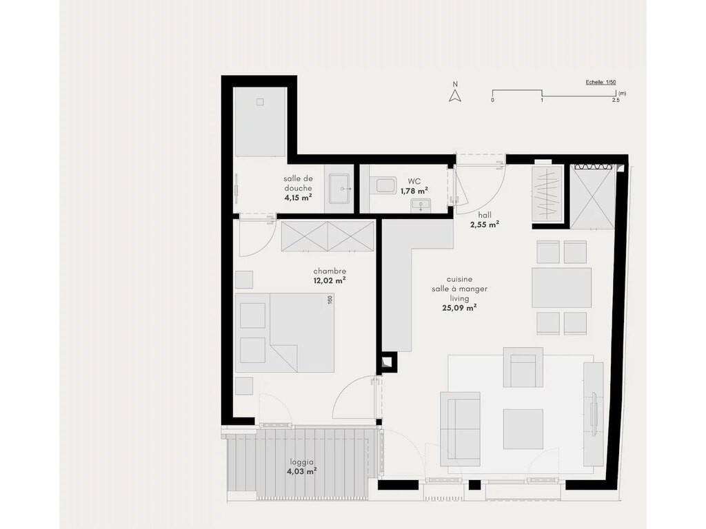 I am a new apartment with a cadastral area of 47.17 m2 and a beautiful loggia of 4.03 m2, for a weighted area of 50.37 m2, ready to write my story with you!