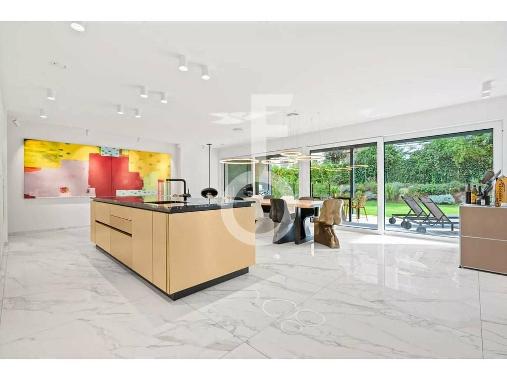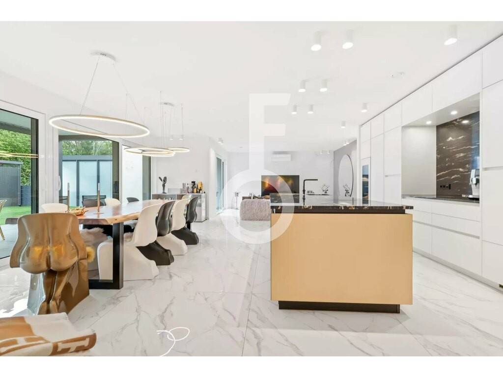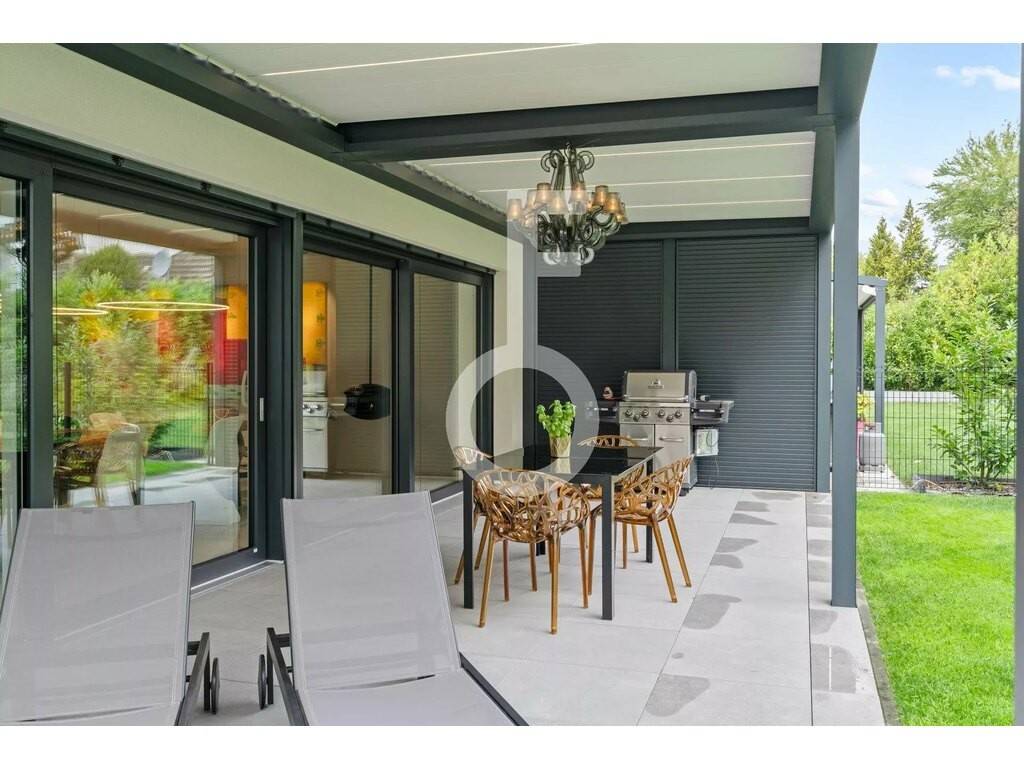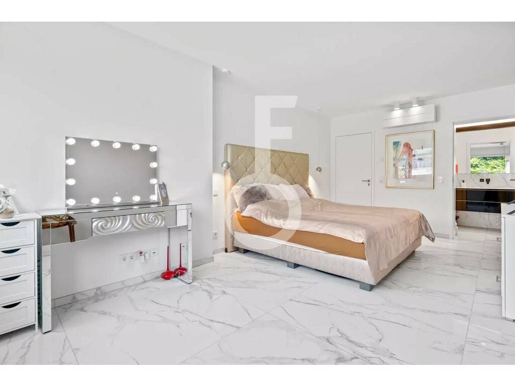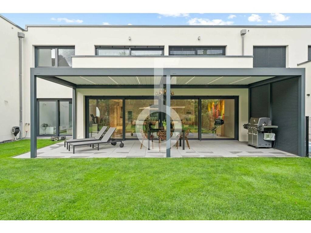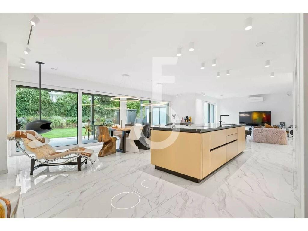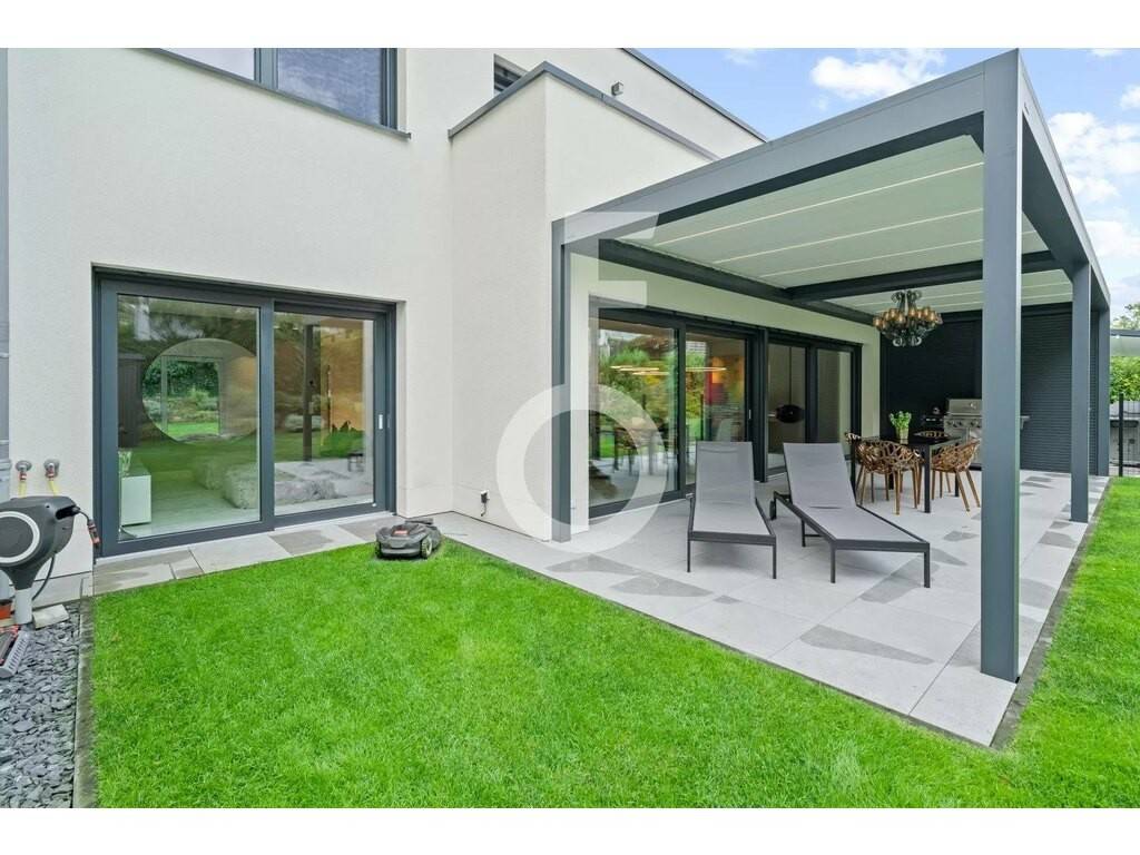 First Floor: - Entrance hall with direct elevator access - Spacious open-plan living area of approx. 70 m² featuring a high-end fully equipped kitchen (including integrated wine fridge), dining area with a suspended fireplace, and a comfortable lounge area - Direct access to a large terrace with an electrically adjustable pergola and integrated lighting, as well as to a fenced garden with a garden house - Storage / technical room - Two large bedrooms of 20 and 21 m² with access to a generous bathroom - A third bedroom with direct access to a second shower room - Separate guest WC
