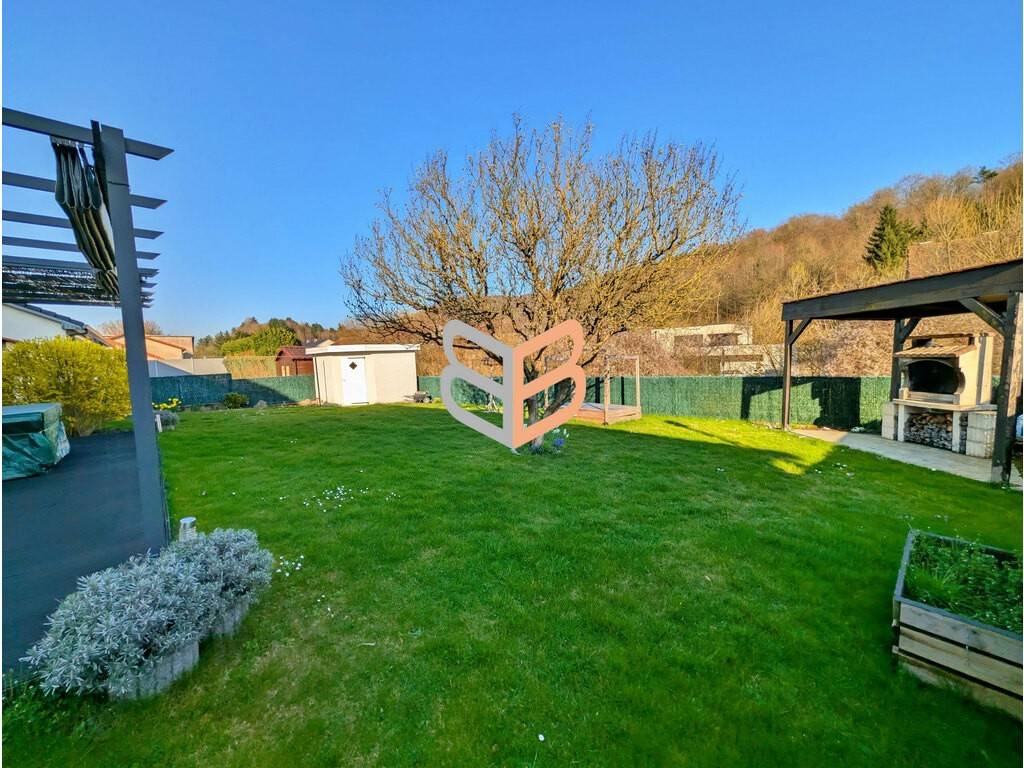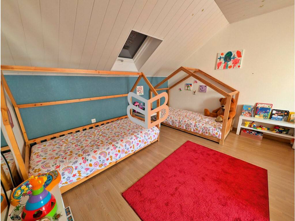 Située dans un quartier résidentiel calme de Ottange, à proximité de la frontière luxembourgeoise, cette maison individuelle construite en 1995 développe 106 m² habitables sur un terrain de 509 m². Le rez-de-chaussée offre un espace de vie de plain-pied comprenant une entrée, une cuisine, une pièce à vivre, une chambre, une salle d’eau et des WC séparés. Un garage ainsi qu’une chaufferie complètent ce niveau, apportant fonctionnalité et rangement. À l’étage, vous découvrirez deux chambres, dont une avec dressing, ainsi qu’une buanderie – dressing pouvant être réaménagée en salle de bain selon vos besoins. Des WC séparés sont également présents à ce niveau. Le terrain de 509 m² permet de profiter d’un extérieur agréable avec notamment une terrasse avec appentis dans un environnement recherché, idéal pour une vie familiale à proximité immédiate des axes frontaliers.