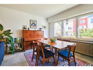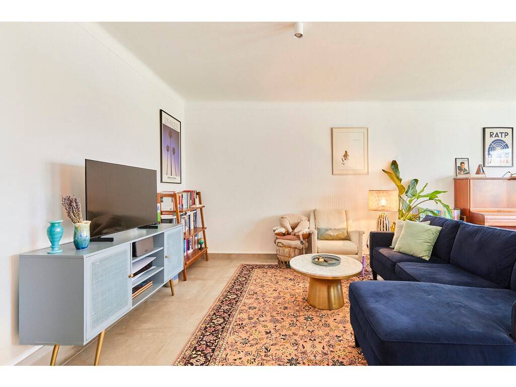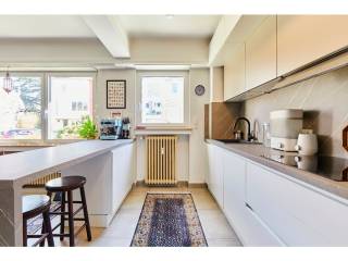 Renovated in 2022-2023, the property is on the first floor and offers a surface area of 90m2. It opens onto an entrance hall that leads to a vast open-plan space comprising a living room, dining room and open-plan kitchen.