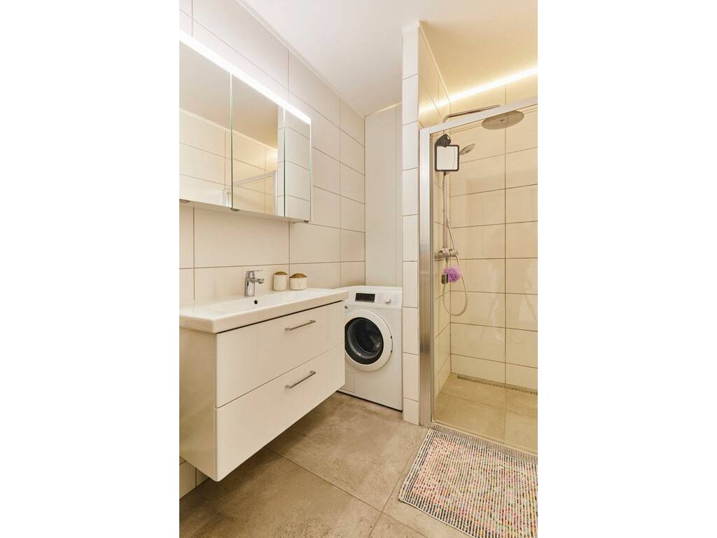 The night area offers a separate toilet, two bedrooms, one of which has direct access to the large south-facing 12 sqm. rear terrace, and a shower room.