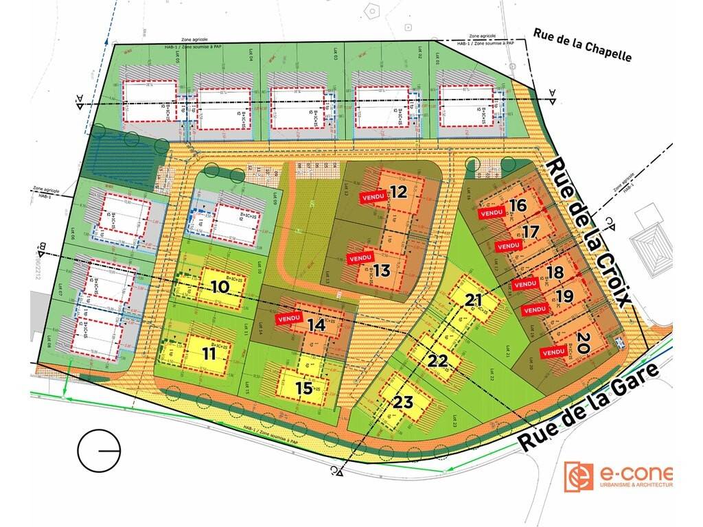 The "Beim Kräiz" bus stop is in the immediate vicinity of the housing estate and is only used to transport children attending the Schouweiler school. However, the PAP plans to install a new bus shelter for regular transport, around 20m from the "Beim Kräiz" stop.