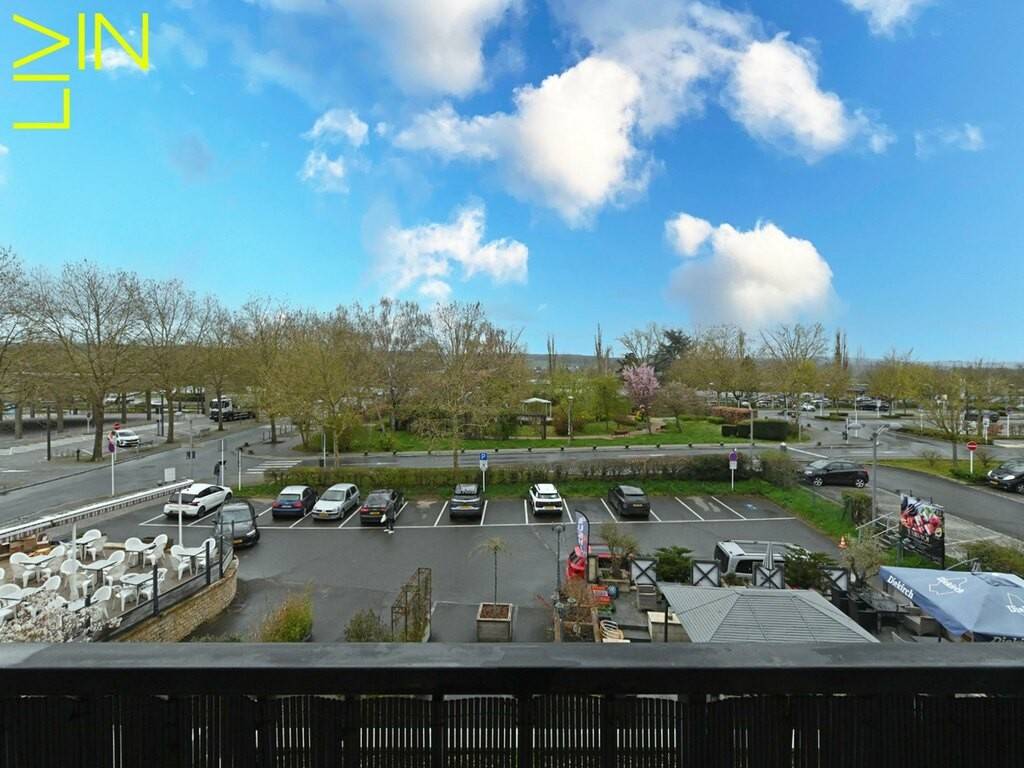 The apartment consists of an entryway, a storage/laundry room, a separate fully equipped kitchen, a shower room with toilet, a bedroom, and a spacious living room opening onto a balcony that offers a beautiful view of the esplanade and the Moselle.