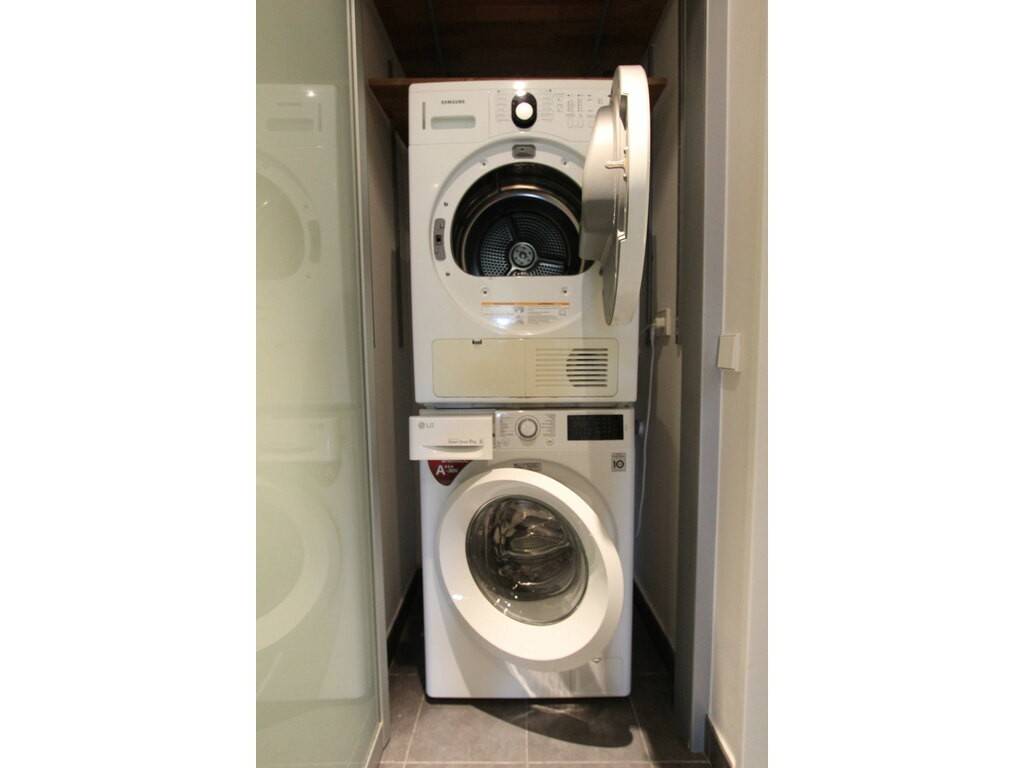 Complètent l'appartement une grande salle de bains (lavabo et baignoire) et un WC séparé. Au fond du couloir vous disposerez d'un débarras dans lequel se trouvent la machine à laver et le séchoir, tandis que au sous-sol vous aurez deux caves.