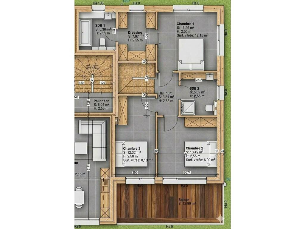 - un hall de nuit - une salle de bains - une suite parentale de luxe avec dressing et salle de bains privative - une deuxième chambre à coucher avec accès au grand balcon - une troisième chambre à coucher avec accès au grand balcon