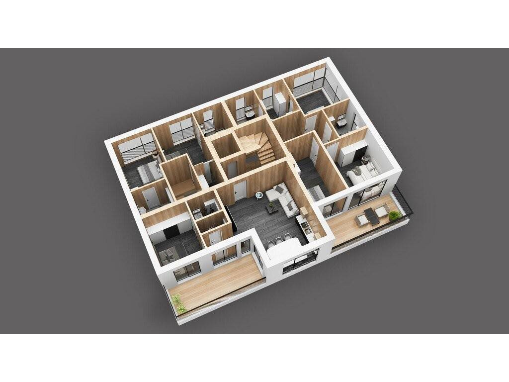 La résidence sera réalisée en construction écologique en bois massif, offrant un confort de vie optimal, une excellente performance énergétique et une architecture moderne avec de grandes terrasses et balcons.