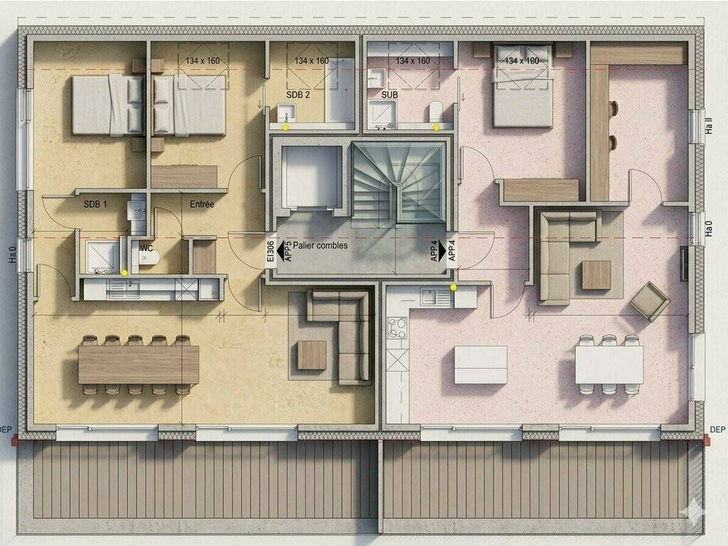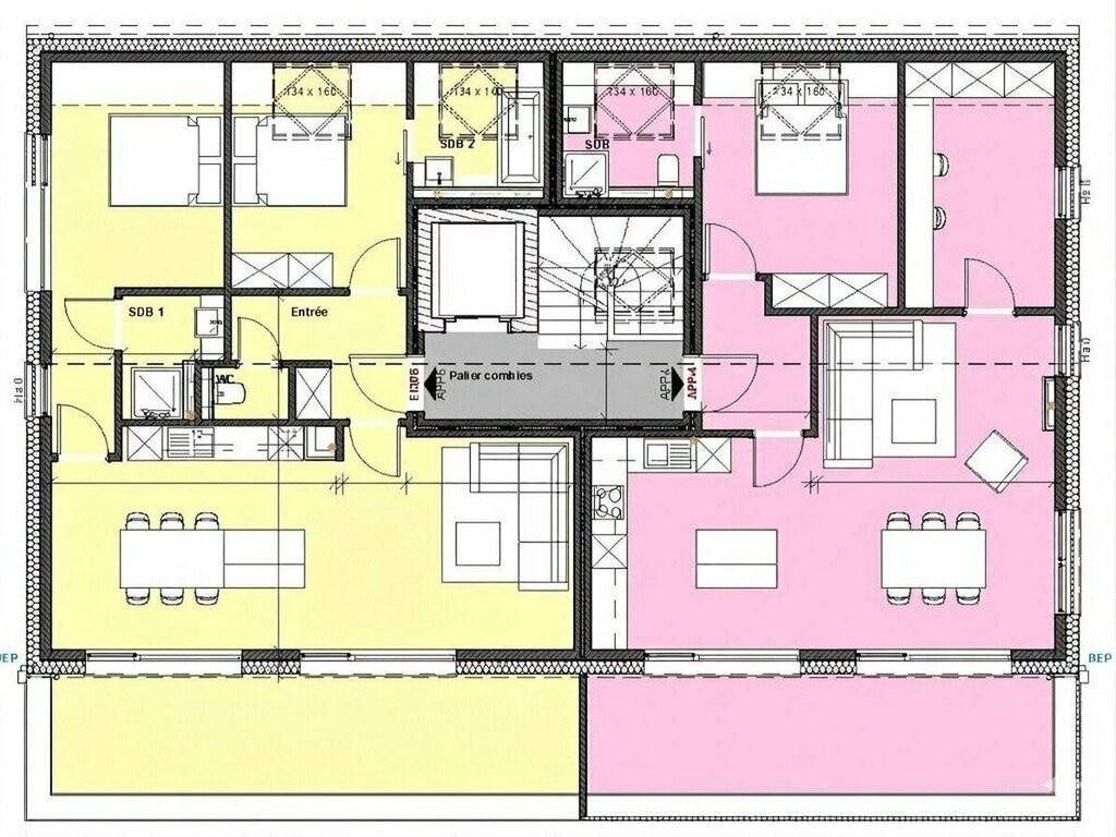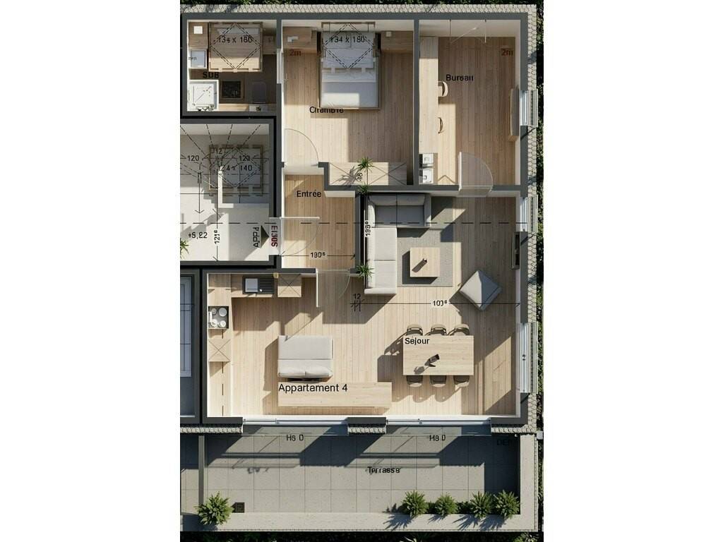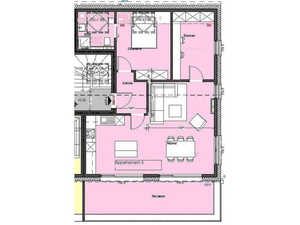 Appartement 4 "ROSE" (057) : Appartment deux chambres d'environ 82,57 m² avec un trés grand balcon d'environ 16,9m²