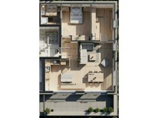 - un hall d'entrée - une cuisine et séjour "open space" avec accés vers votre immense terrasse de +-16.9m² - une chambre à coucher avec votre salle de bains privative - une deuxième chambre à coucher