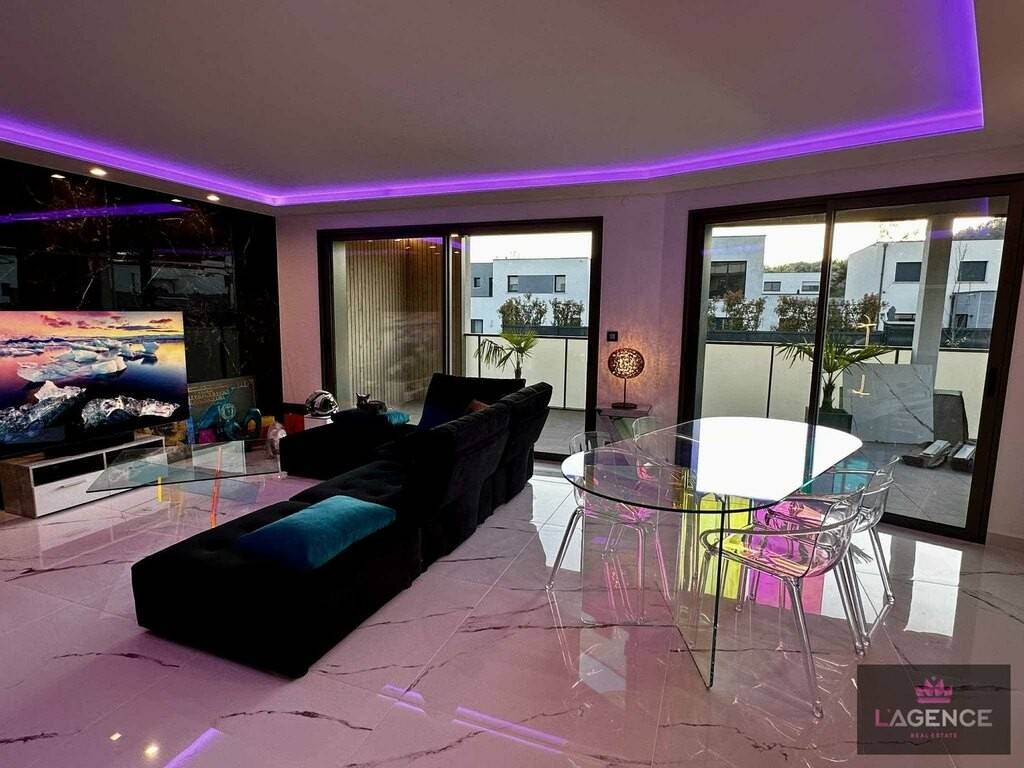 Le bien dispose de matériaux et finitions de qualité, de la cuisine aménagée et équipée venant de chez Arthur Bonnet ( plan de travail en quartz, prix de la cuisine 32000 euros), cette dernière sera totalement finalisée le mois prochain, aux carrelages ( Costiles), salle de bain venant de chez Paini ( baignoire 1,90 X 90), 2 climatisations réversibles Mitsubishi, fenêtres double vitrage aluminium, volets motorisés avec domotique, adoucisseur, chauffage au sol avec chaudière à condensation, électricité prévue pour installation home cinéma à plusieurs points stratégiques de la pièce de vie, balcon de 20 m2 exposé Sud-Ouest, place de parking en sous-sol avec installation d'une borne électrique performante.