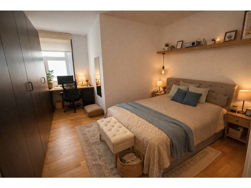 -Une chambre spacieuse avec salle de bain attenante -Un WC séparé, pour les invités -Un séjour lumineux avec cuisine équipée ouverte, Espaces de rangement : Un débarras fonctionnel à l’intérieur de l’appartement