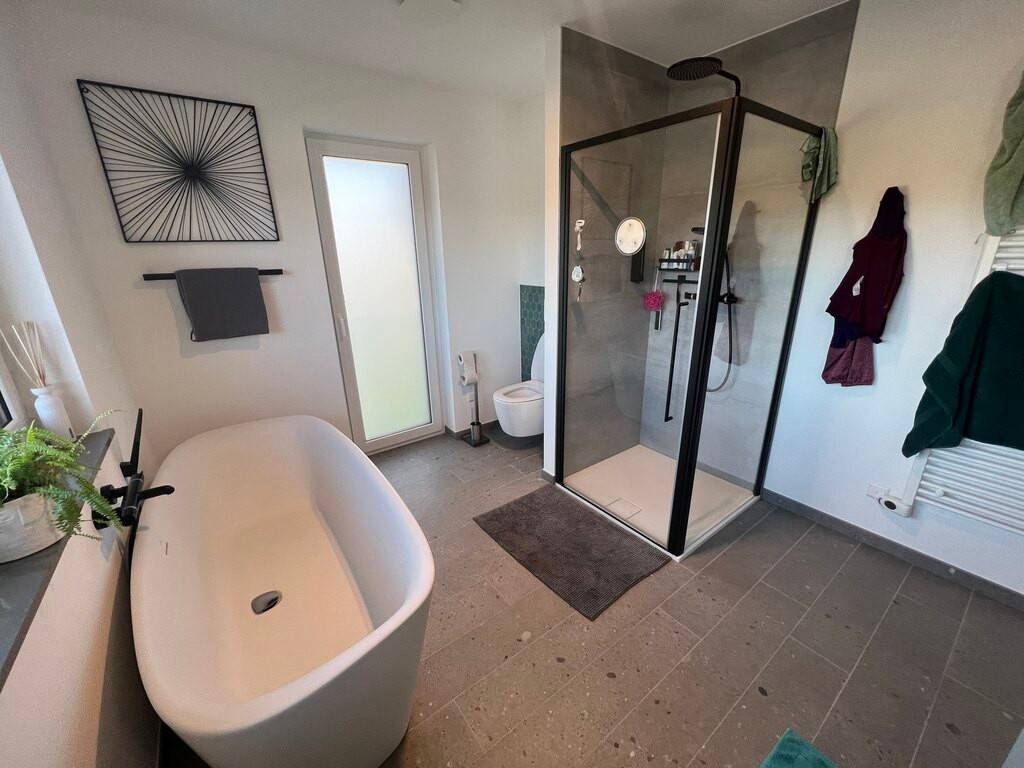 You'll enjoy the benefits of its geothermal heating system—which is especially refreshing in the summer—along with self-consumption solar panels for electricity, a rainwater harvesting system for daily use, underfloor heating throughout the house, polished concrete floors (except in the bedrooms), triple-pane windows, blinds with removable slats, a central vacuum system on every floor, an alarm system linked to smoke detectors, and so on and so forth......