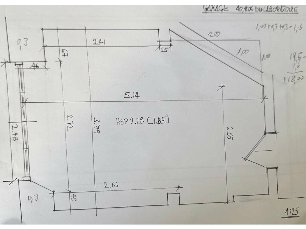 Ce garage individuel fermé offre une surface d’environ 20 m² ainsi qu’une hauteur sous plafond d’environ 1,85 m avec une largeur d’entrée de 2,48 m.