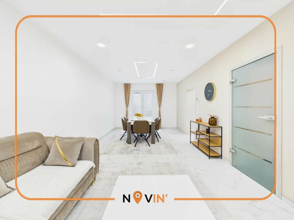 On the ground floor, the house features a spacious living area of approximately 30 sqm, filled with natural light, with underfloor heating and a large picture window opening directly onto the garden. The brand-new, fully equipped kitchen extends naturally from the living spaces and also provides direct access to the outdoors, ideal for seamless indoor-outdoor living.