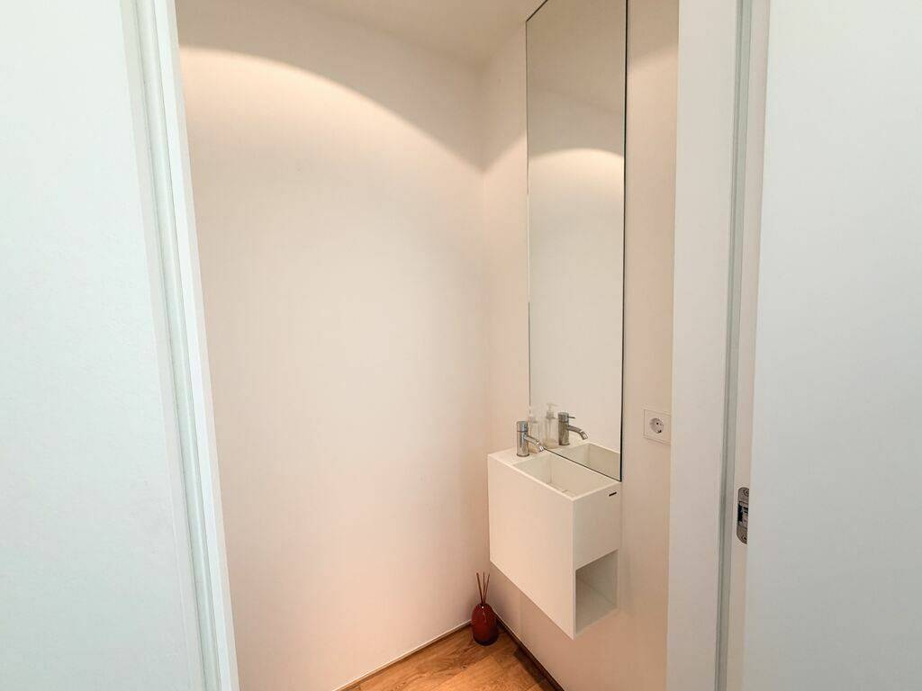 From the moment you enter, the apartment impresses with a welcoming entrance hall featuring a custom-built wardrobe that provides discreet and practical storage space. A separate guest toilet is also conveniently located at the entrance.