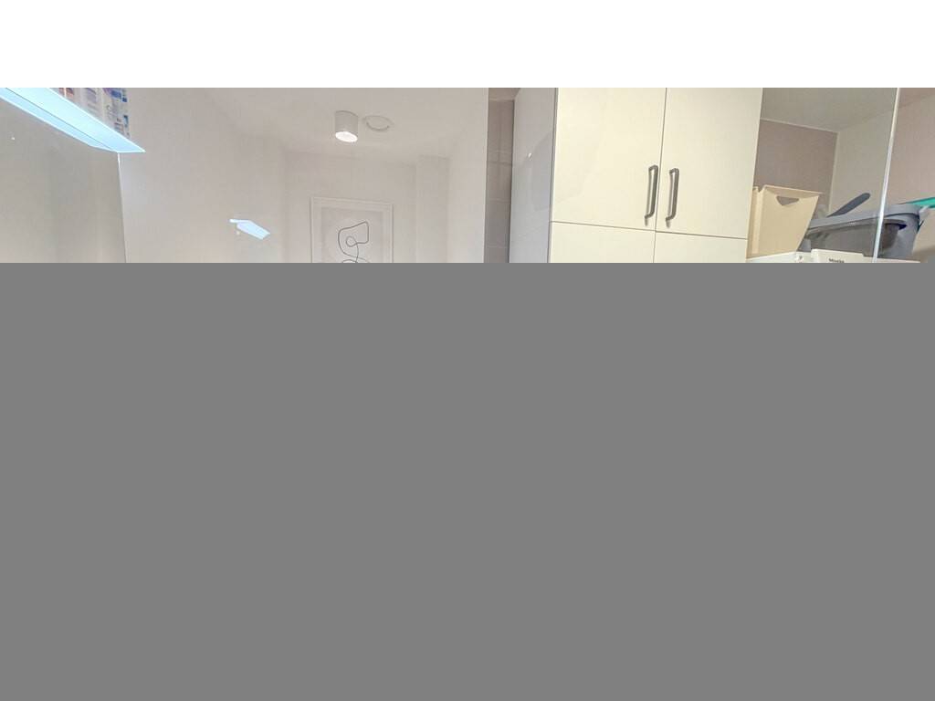 L'appartement dispose de deux belles chambres de 13,08 m² et 13,38 m², chacune équipée d'armoires encastrées sur mesure, offrant des solutions de rangement élégantes et parfaitement intégrées. Vous y trouverez également une salle de douche spacieuse avec buanderie privative ainsi qu'un WC séparé.