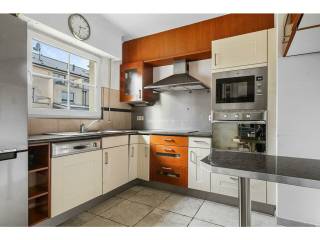 Occupying the top two floors of a well-maintained two-family home, this property offers separate entry and complete privacy. The tone is set from the moment you enter: dual exposure, a marble fireplace, and built-in bookshelves create a living room of rare elegance. The fully equipped kitchen, a natural extension of the living space, opens onto a private south-facing terrace.
