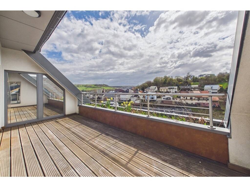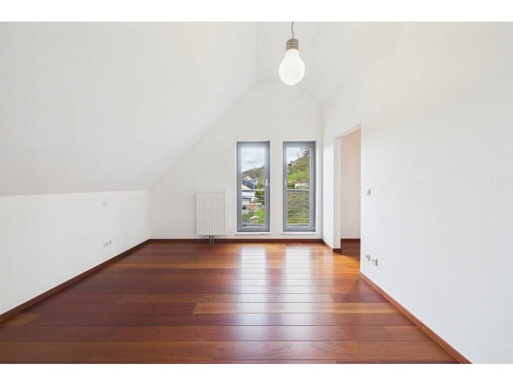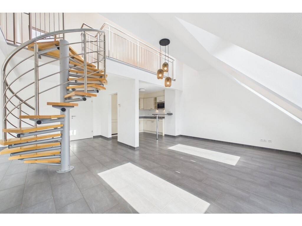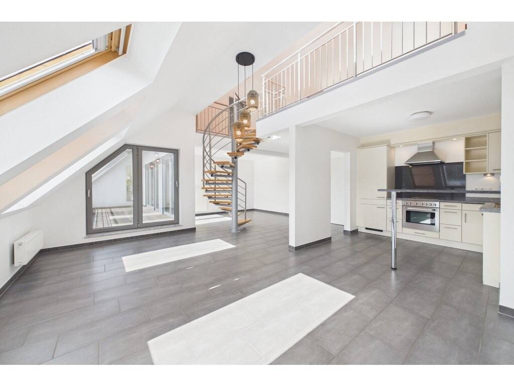Beautiful fully renovated attic apartment with a duplex feel, featuring 2 bedrooms, 125 m² of living space (159 m² total floor area), a large balcony, and an indoor parking space, located on the top floor of the building in Ettelbruck.
